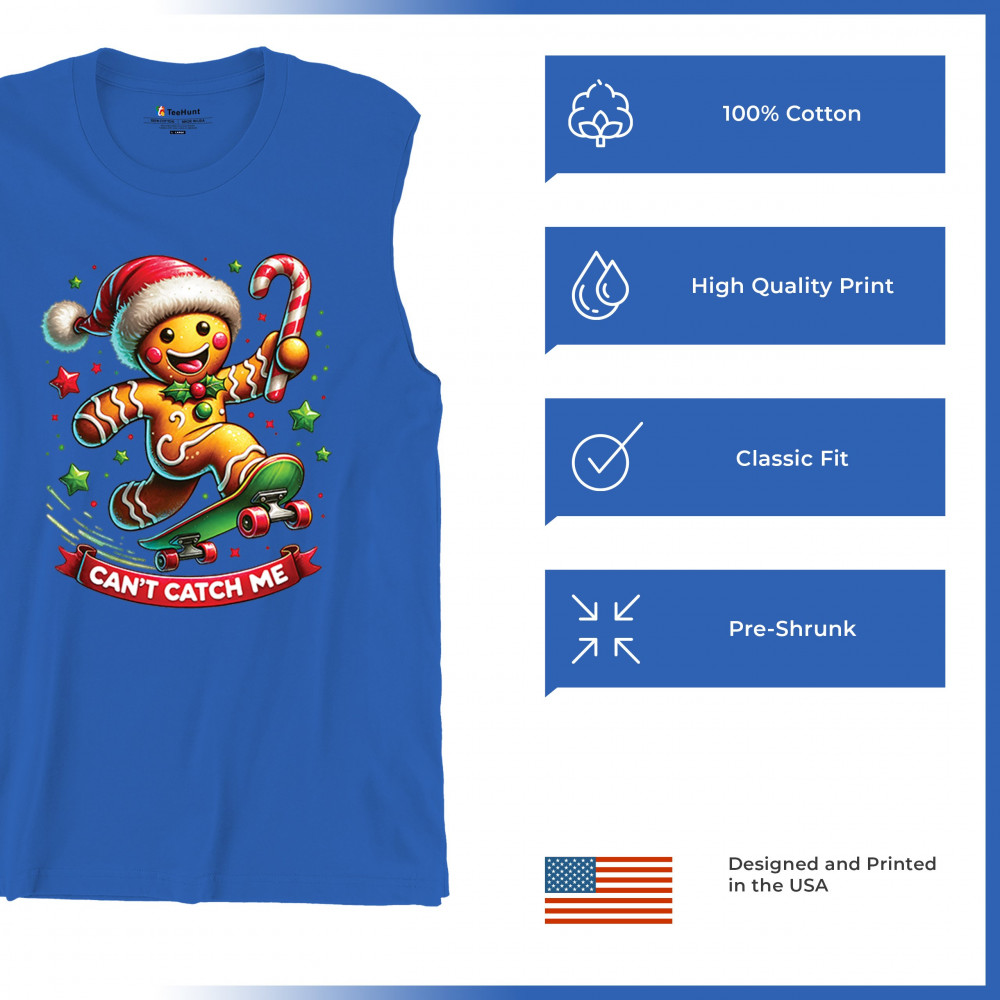 A fun Christmas design featuring a gingerbread character on a skateboard, candy cane in hand, and bright festive colors. Perfect for holiday party outfits, family gatherings, Christmas photos, festive humor fans, stocking stuffer gifting, winter celebrations, and anyone who loves playful seasonal graphics with cheerful personality.