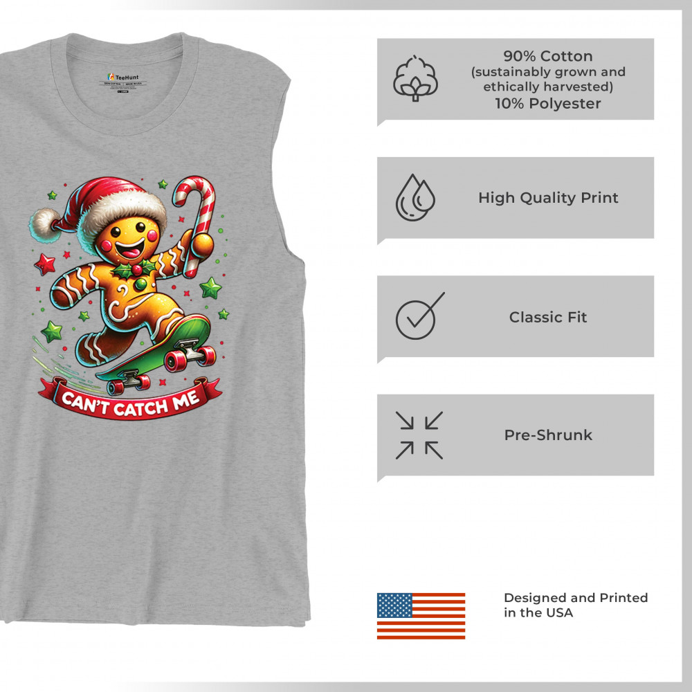 A fun Christmas design featuring a gingerbread character on a skateboard, candy cane in hand, and bright festive colors. Perfect for holiday party outfits, family gatherings, Christmas photos, festive humor fans, stocking stuffer gifting, winter celebrations, and anyone who loves playful seasonal graphics with cheerful personality.