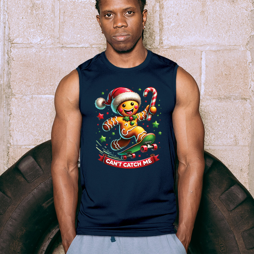 A fun Christmas design featuring a gingerbread character on a skateboard, candy cane in hand, and bright festive colors. Perfect for holiday party outfits, family gatherings, Christmas photos, festive humor fans, stocking stuffer gifting, winter celebrations, and anyone who loves playful seasonal graphics with cheerful personality.