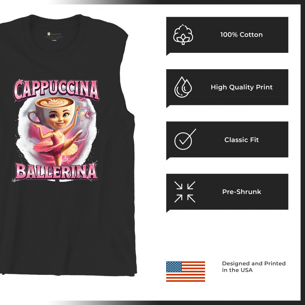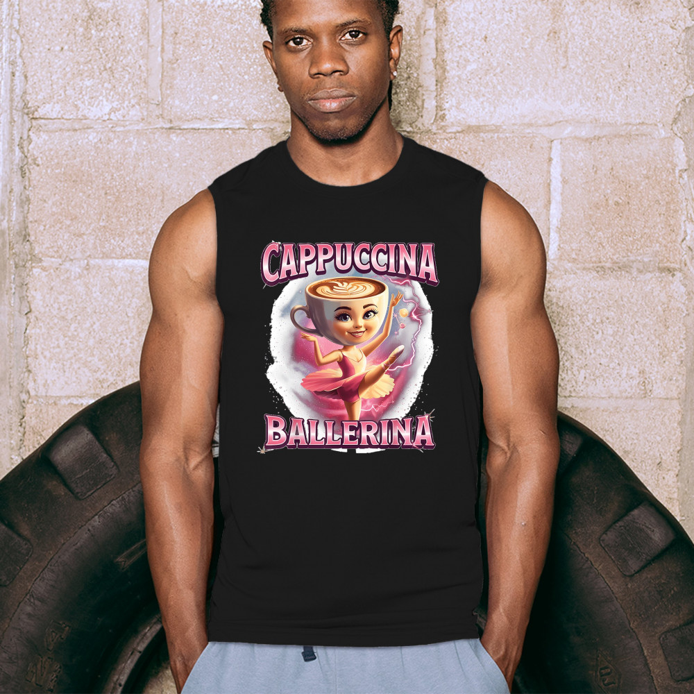 Cappuccina Ballerina is your perfect mix of meme chaos and coffee-core fashion. This absurd design features a ballet-dancing cappuccino head with weirdcore flair and Gen Z humor. A surreal blend of ironic internet fashion, TikTok trends, and espresso madness—ideal for meme lovers, caffeine addicts, and viral absurdists alike.