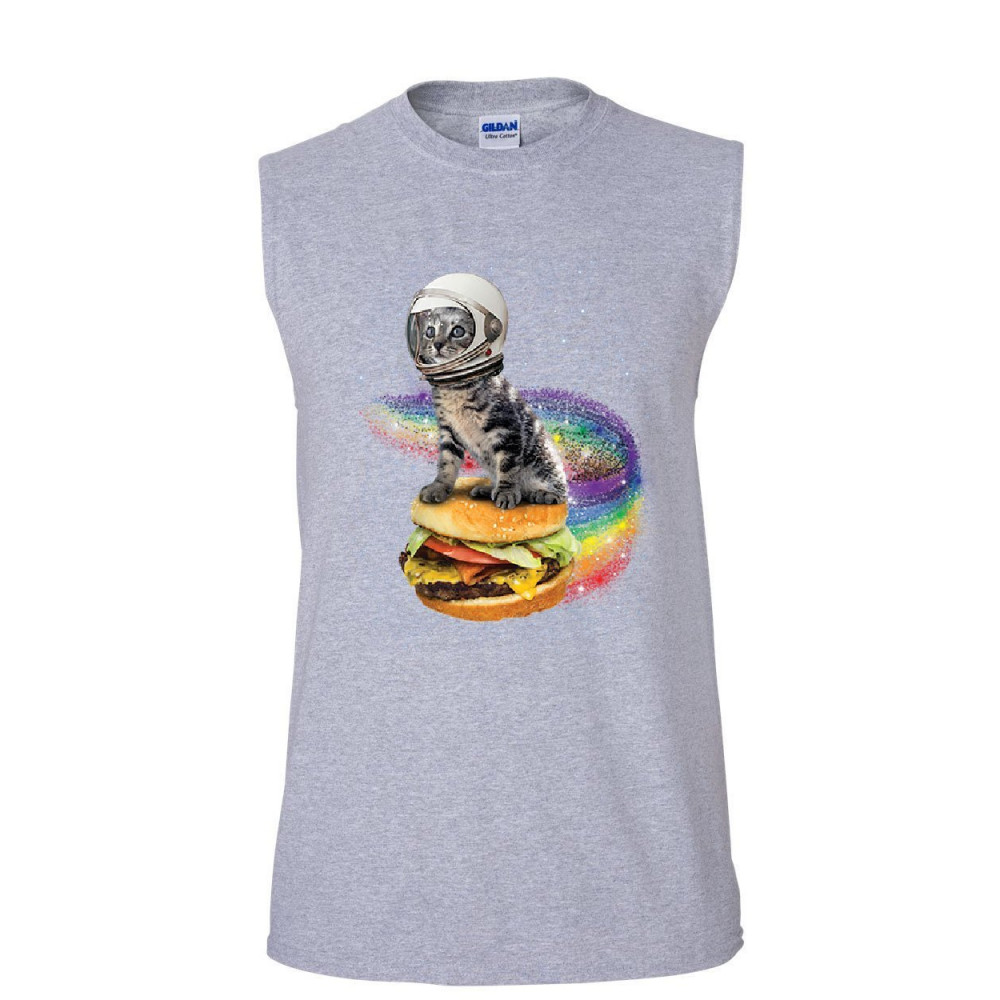 CAT FLYING A RAINBOW BURGER muscle shirt funny astronaut kitten space sleeveless gray