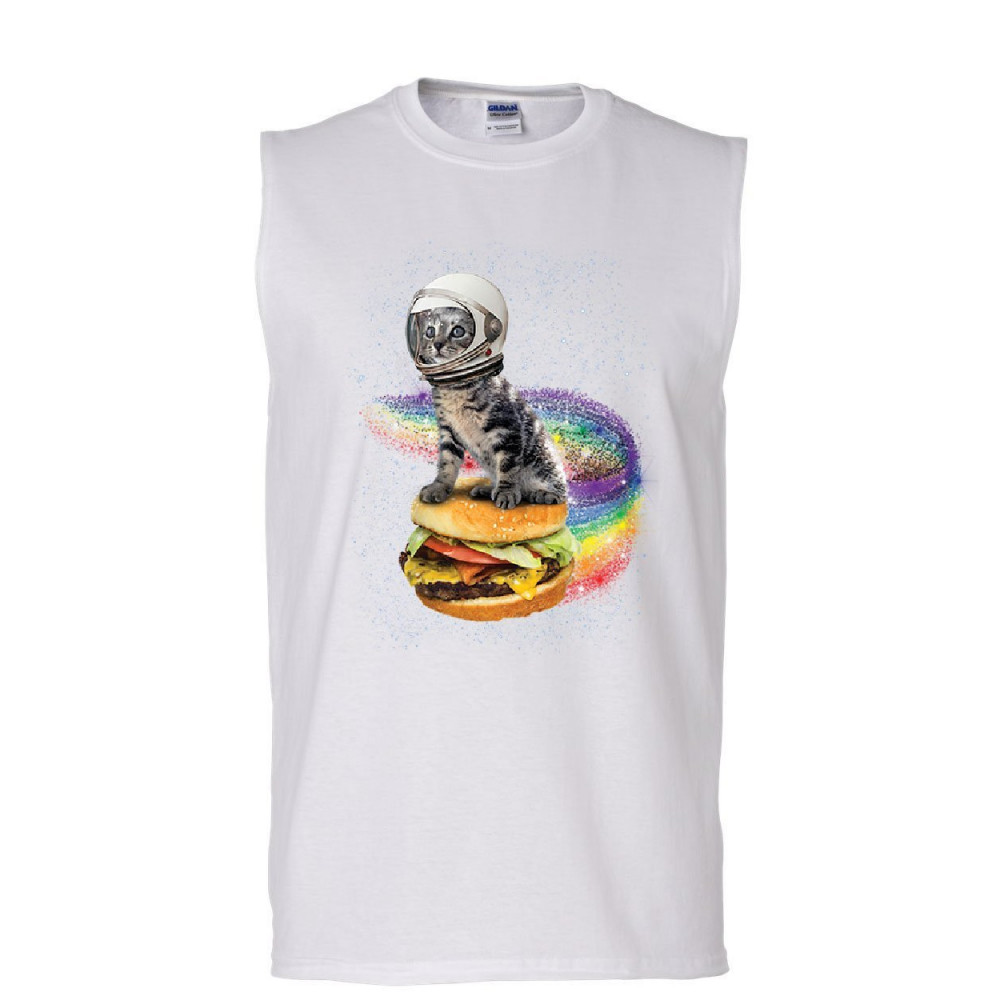 CAT FLYING A RAINBOW BURGER muscle shirt funny astronaut kitten space sleeveless white