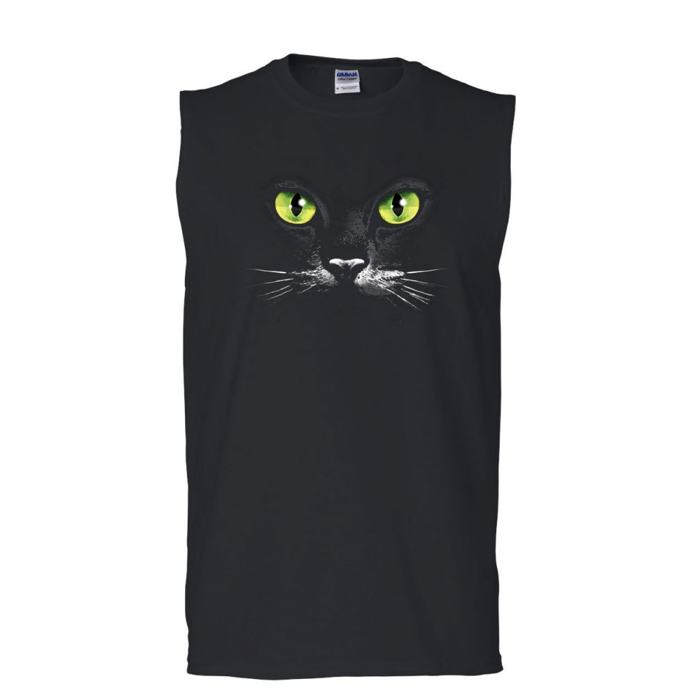 CAT GREEN EYES muscle shirt animal pet lovers kitten huge cat face sleeveless black