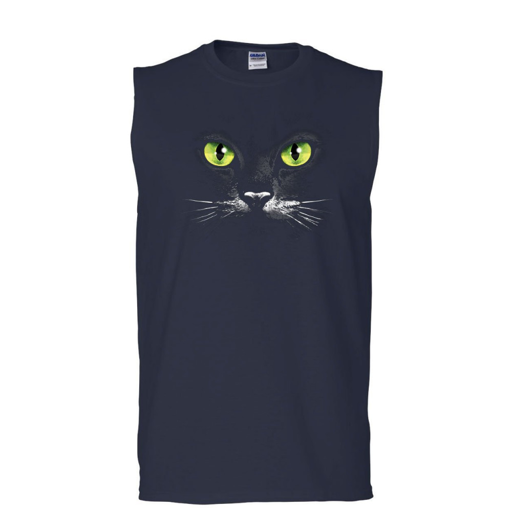CAT GREEN EYES muscle shirt animal pet lovers kitten huge cat face sleeveless navy blue