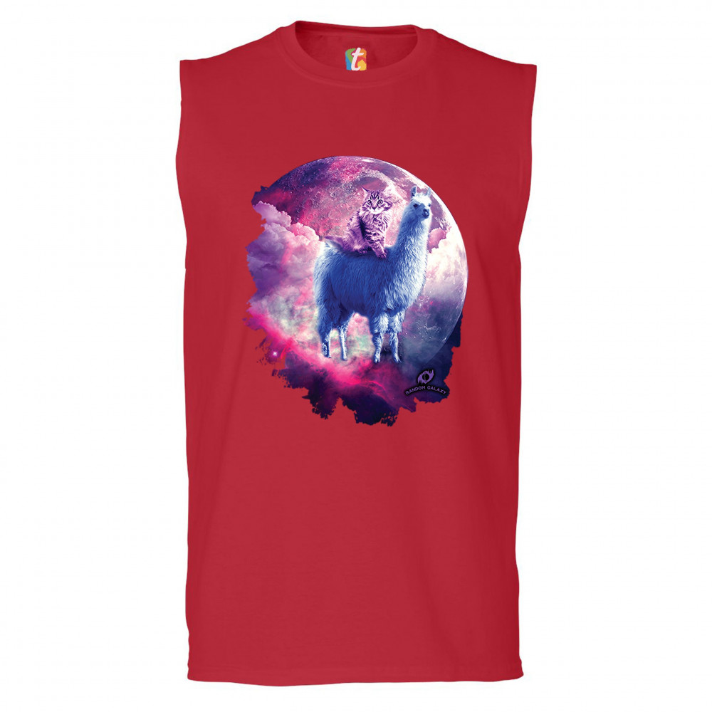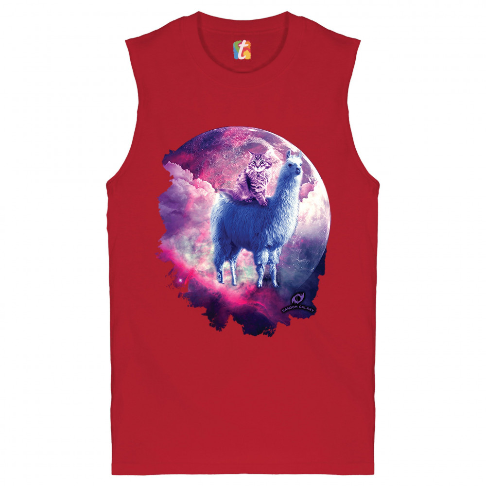 CAT RIDING A LLAMA IN SPACE muscle shirt weird galaxy moon creative men's red