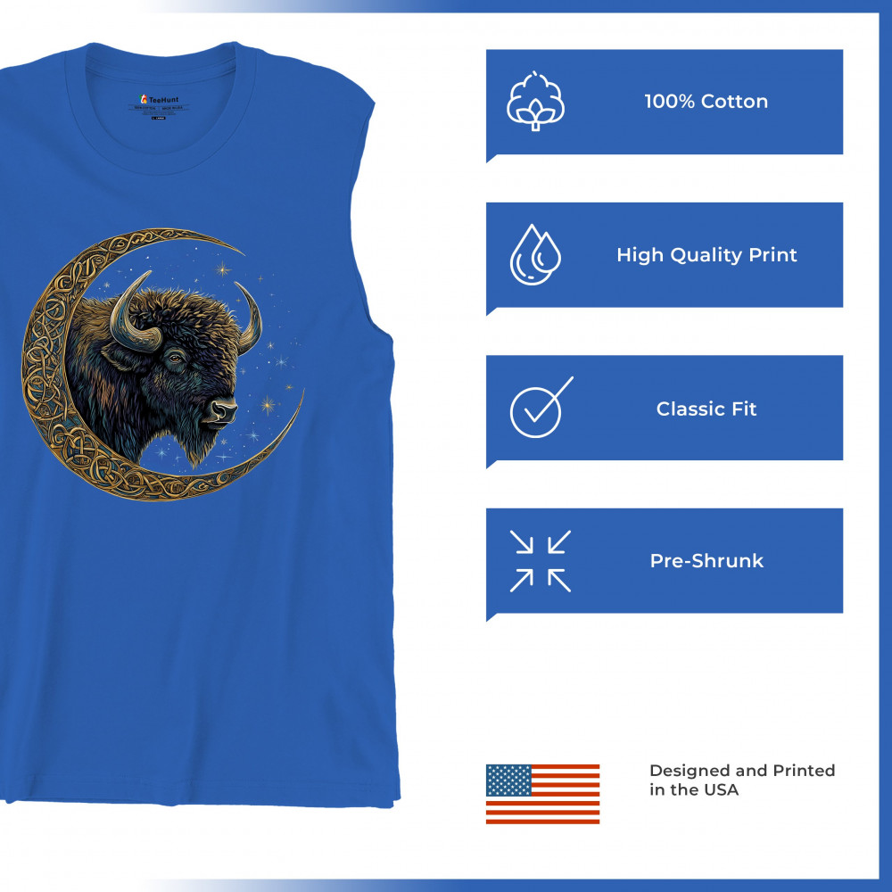 Mystical bison in Celtic moon—perfect for spiritual seekers, art fans, stargazers, and lovers of nature, tribal design, and cosmic energy.