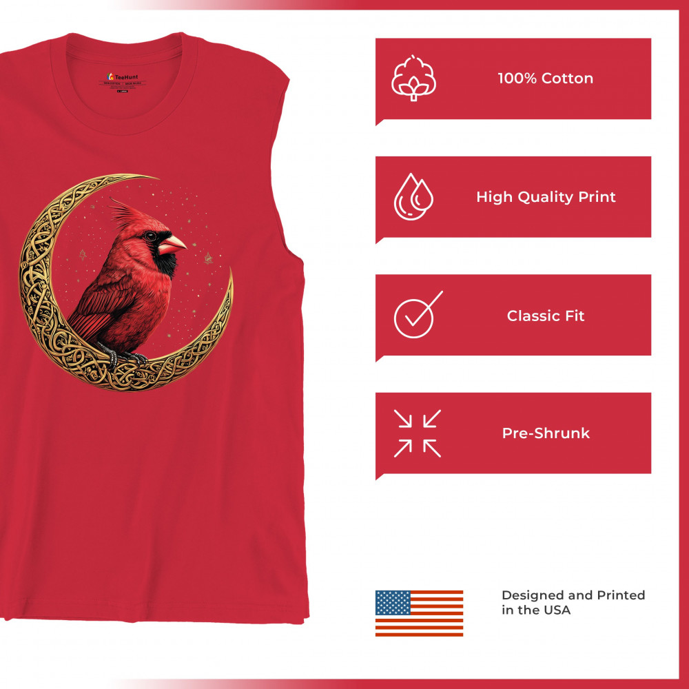 Mystical cardinal with Celtic moon and stars—perfect for nature lovers, spiritual souls, and those honoring love, loss, or remembrance.