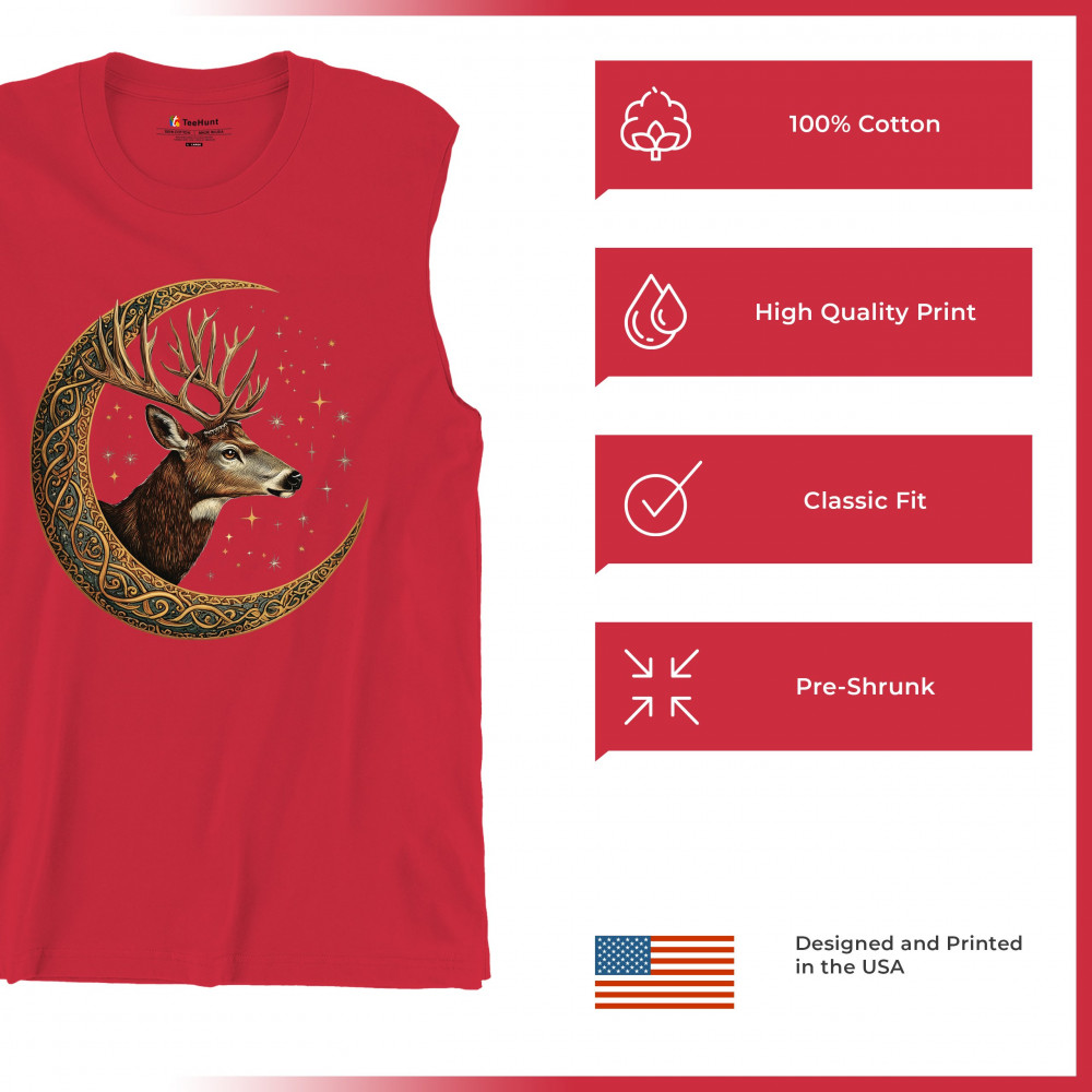 Majestic deer in Celtic moon with stars—symbol of protection, nature, and cosmic wisdom. A mystical gift for hunters, druids, and forest lovers.