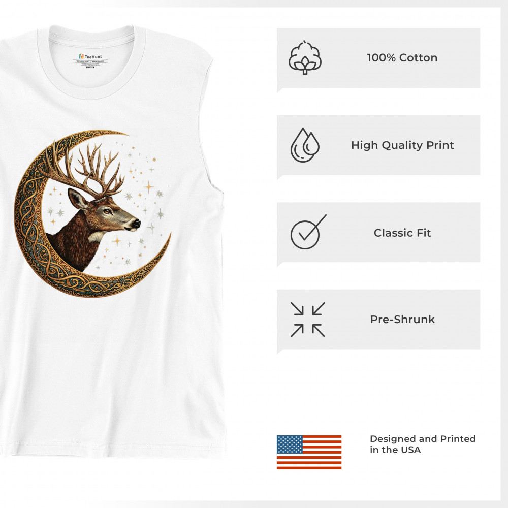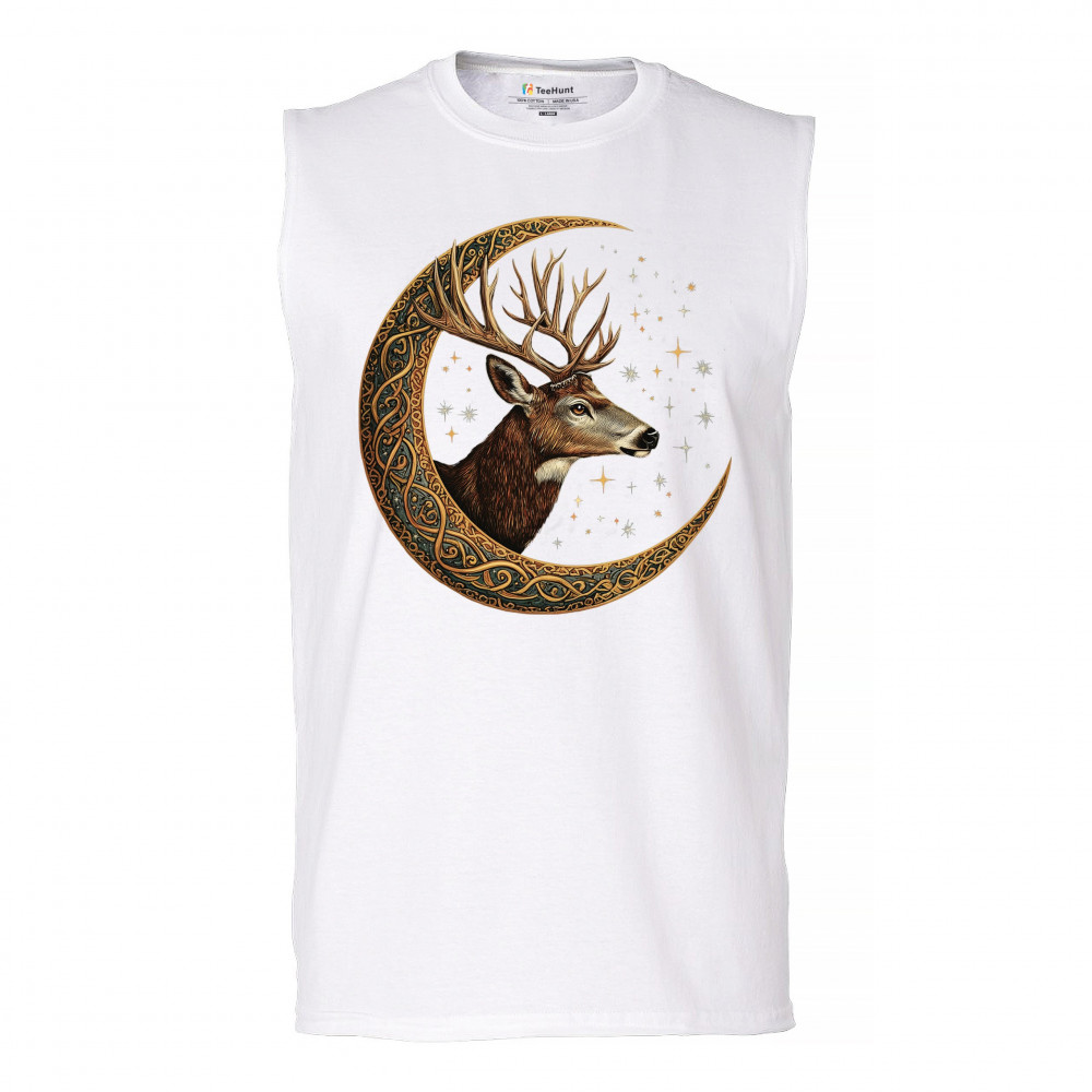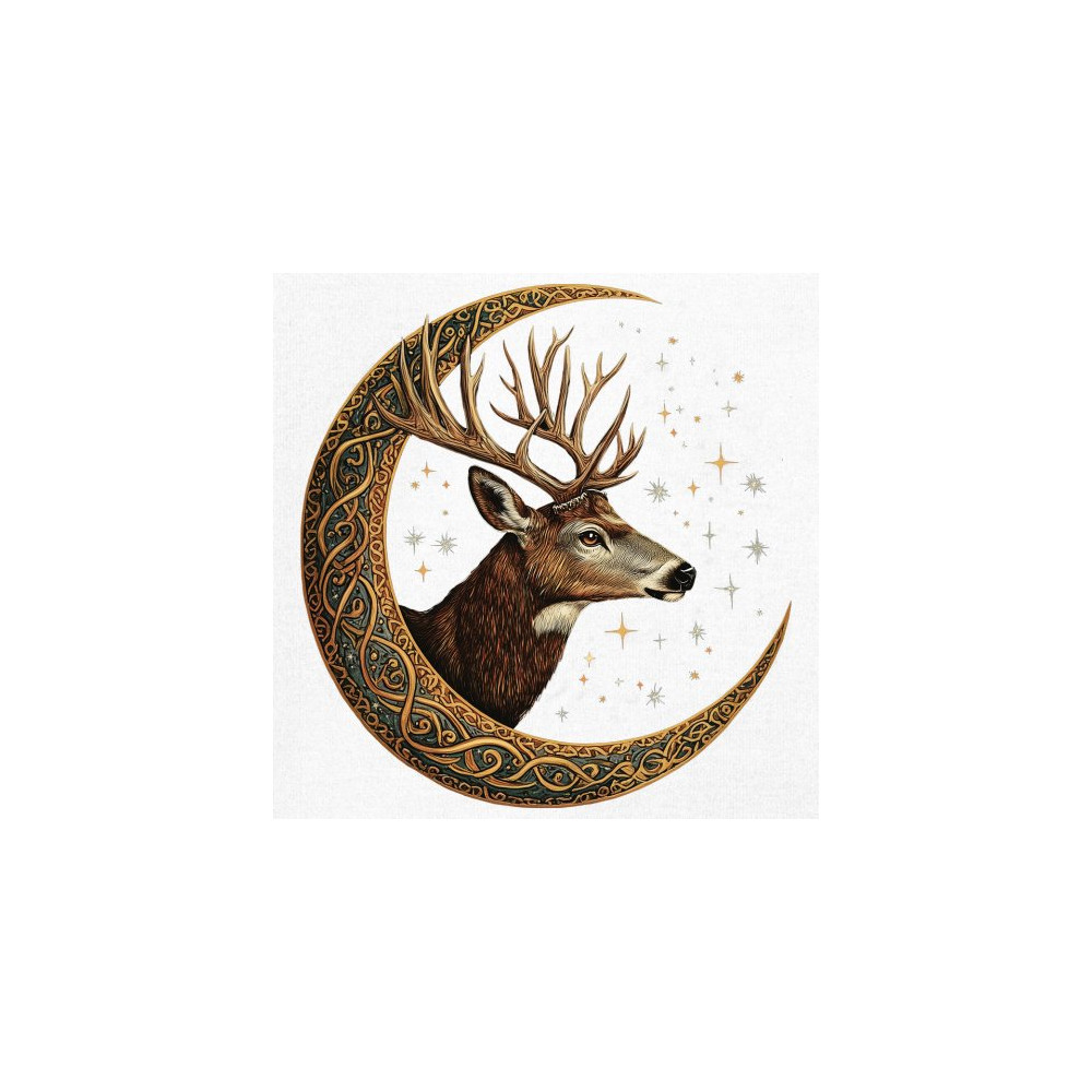 Majestic deer in Celtic moon with stars—symbol of protection, nature, and cosmic wisdom. A mystical gift for hunters, druids, and forest lovers.