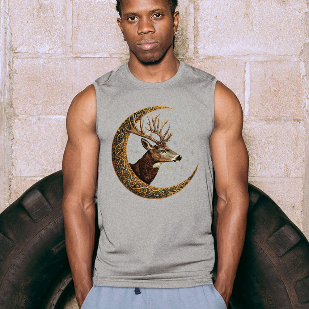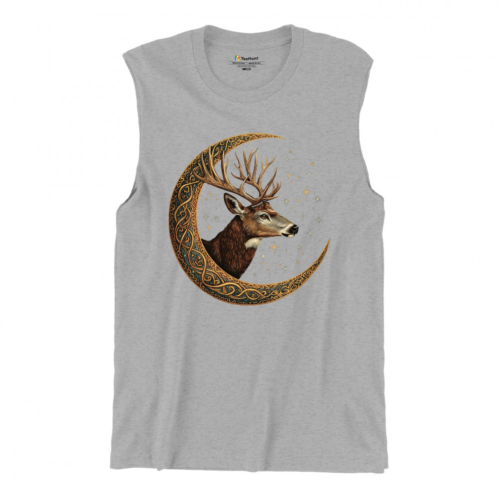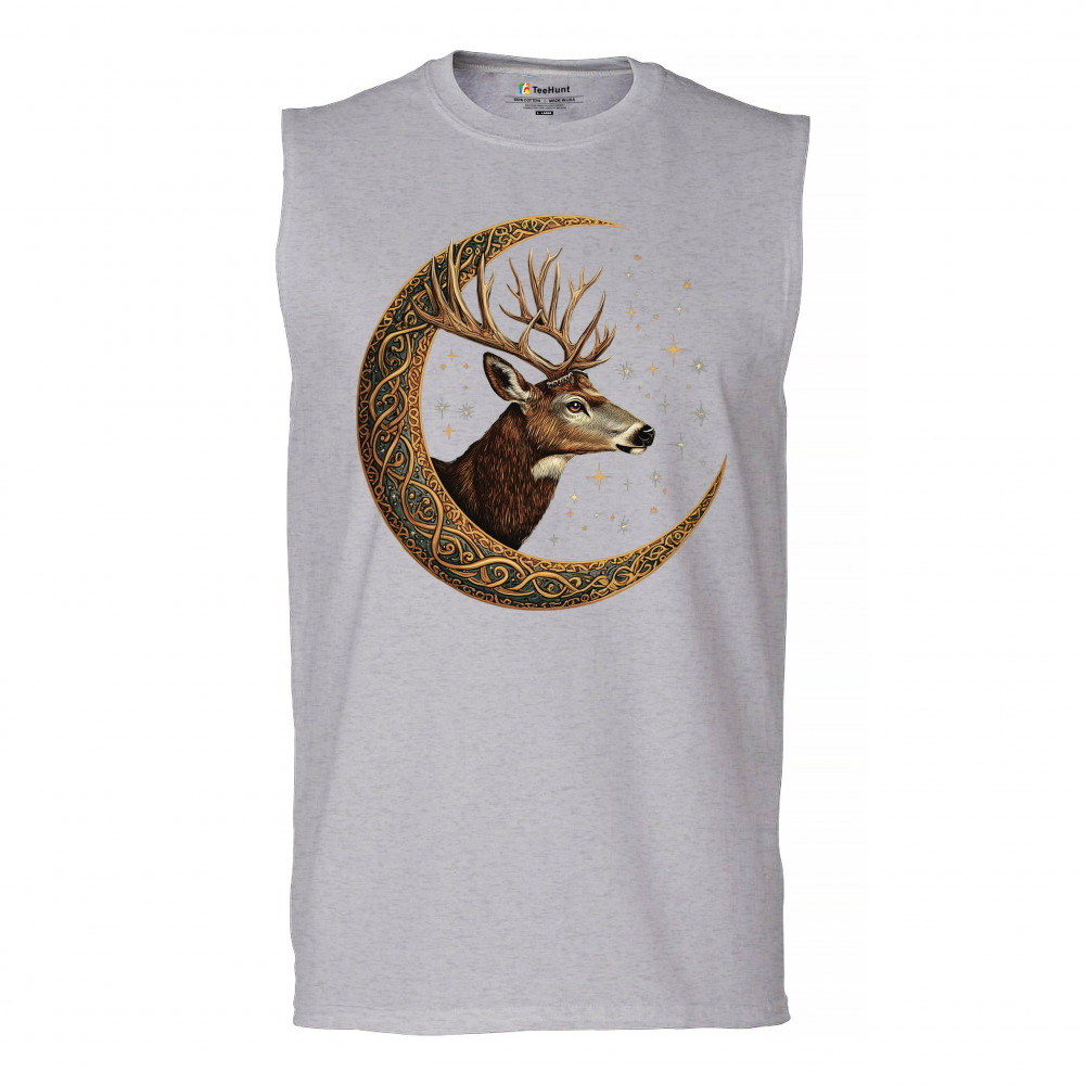 Majestic deer in Celtic moon with stars—symbol of protection, nature, and cosmic wisdom. A mystical gift for hunters, druids, and forest lovers.