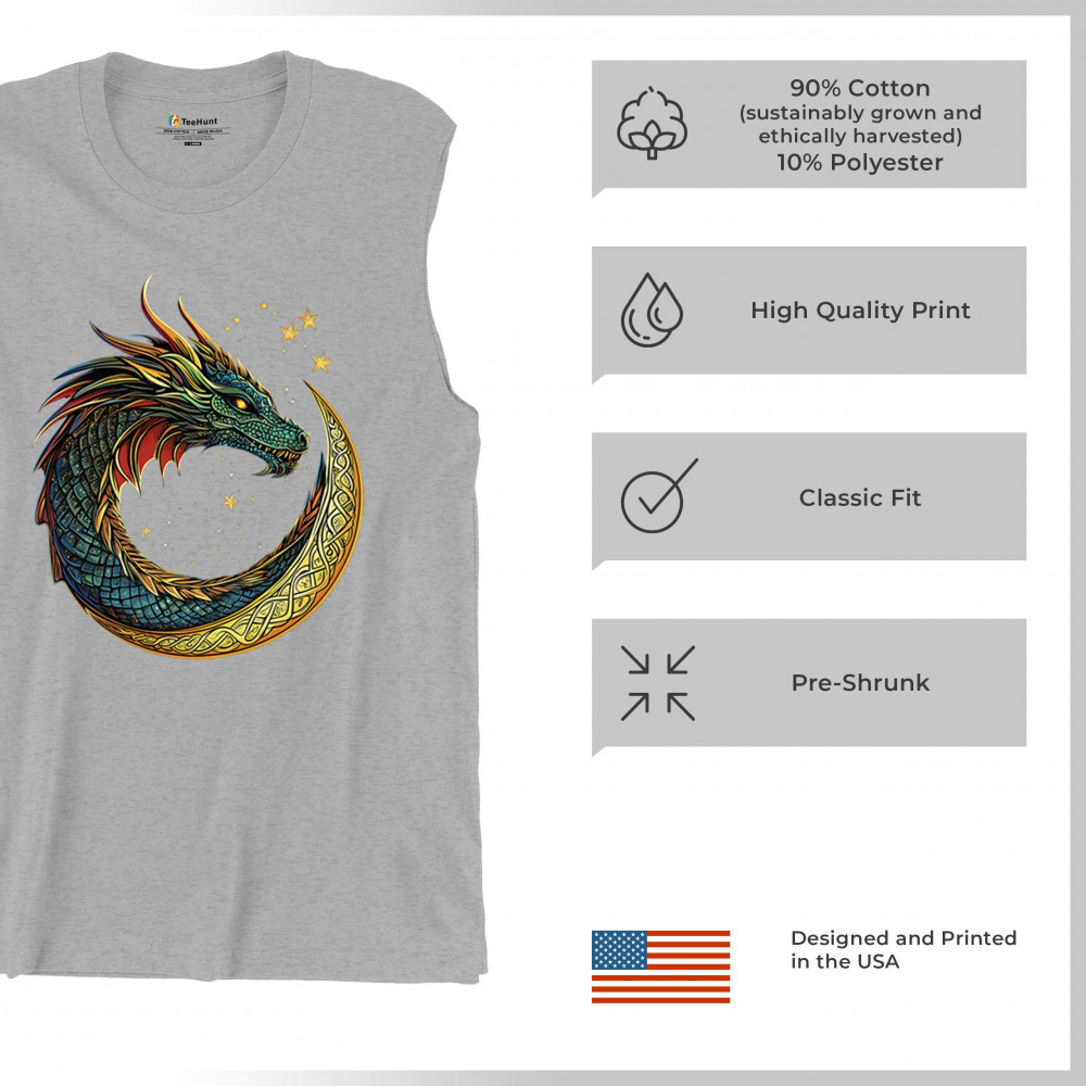 Unleash the spirit of transformation with this fierce dragon coiled inside a golden Celtic crescent moon. Its radiant scales and glowing eyes come to life against a starry, mystical sky. A symbol of fire energy, wisdom, and primal strength—perfect for gamers, fantasy enthusiasts, spiritual seekers, and legend lovers.