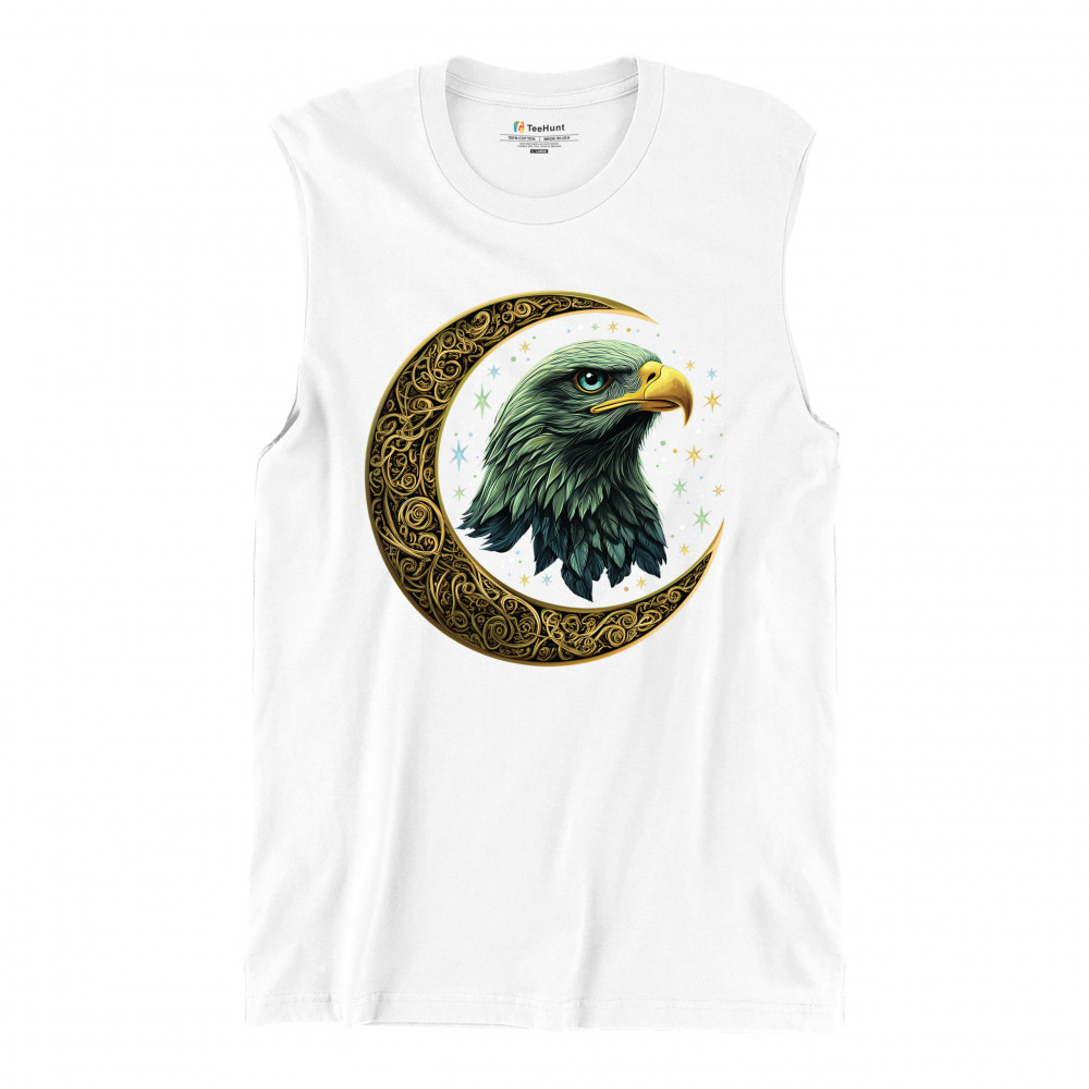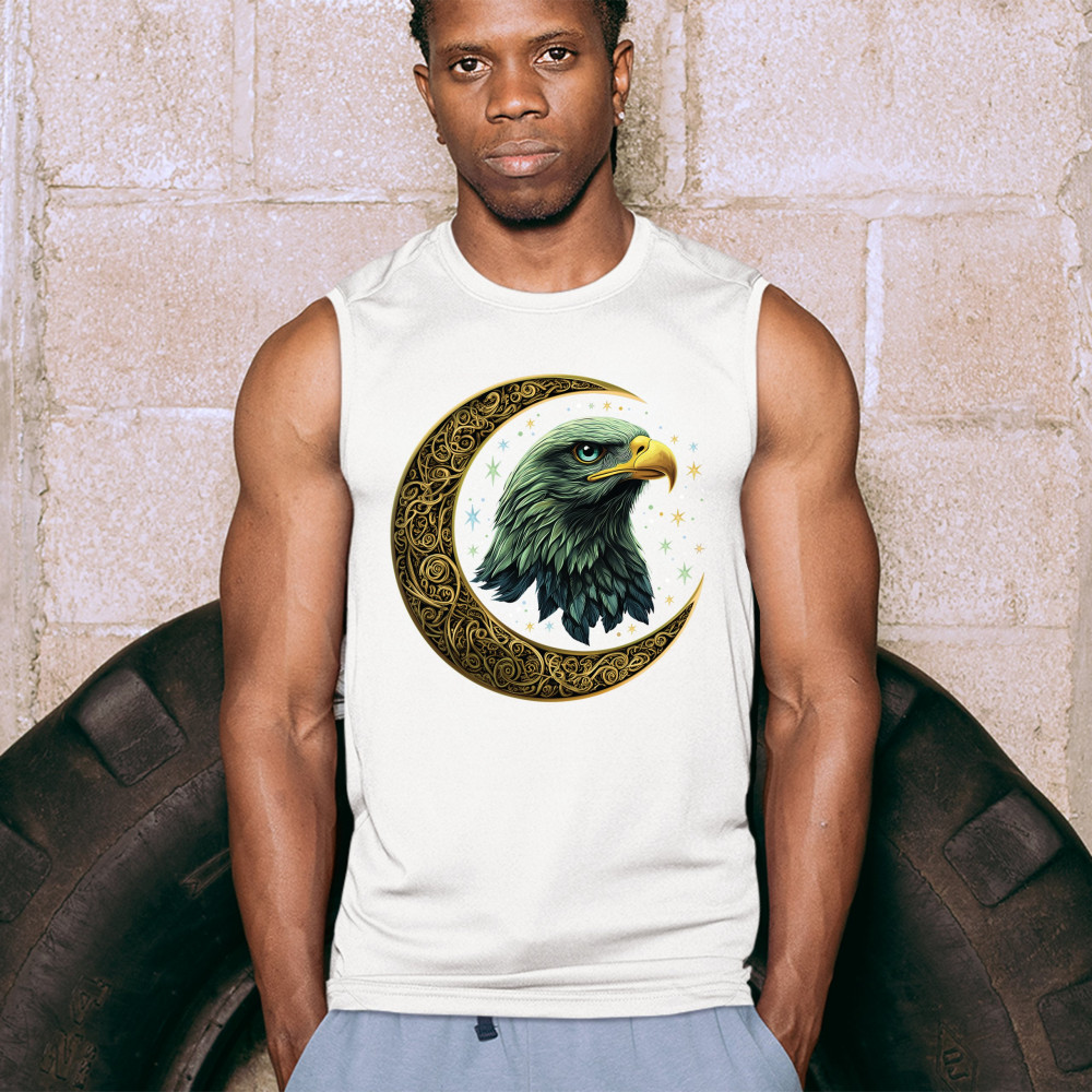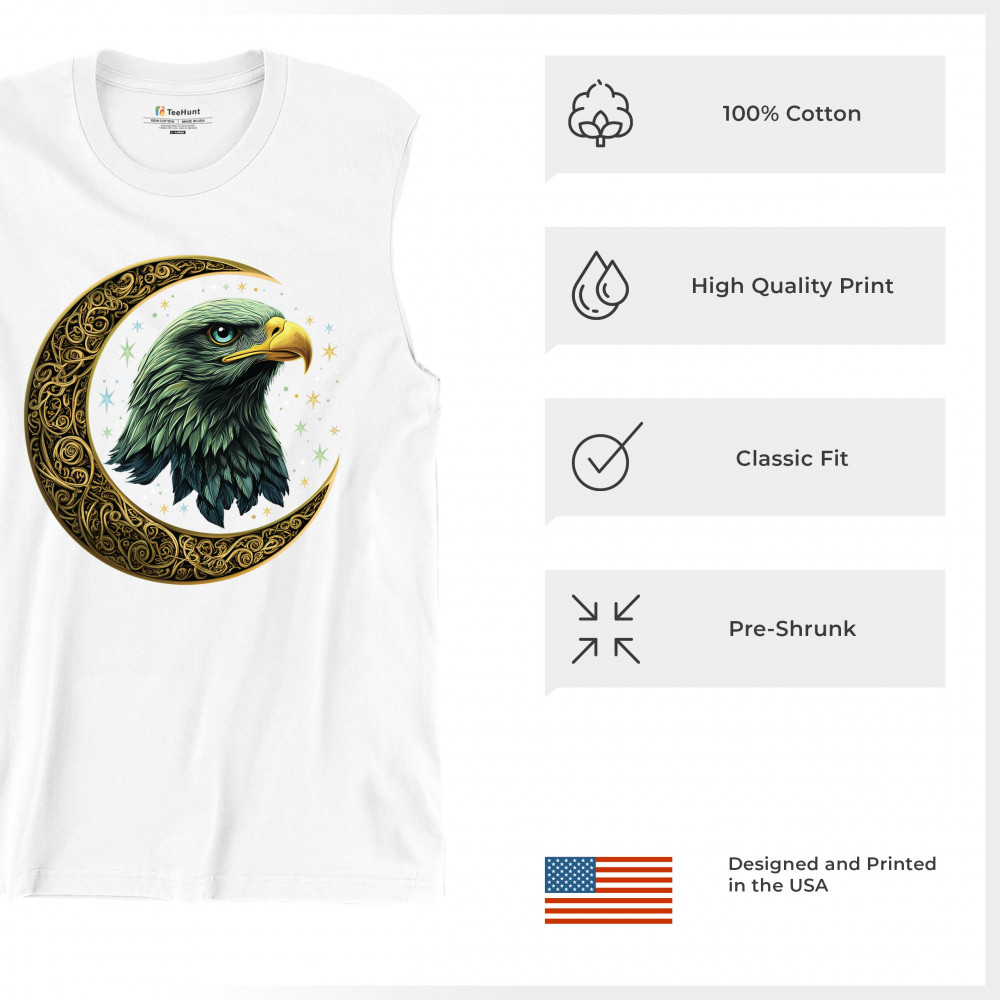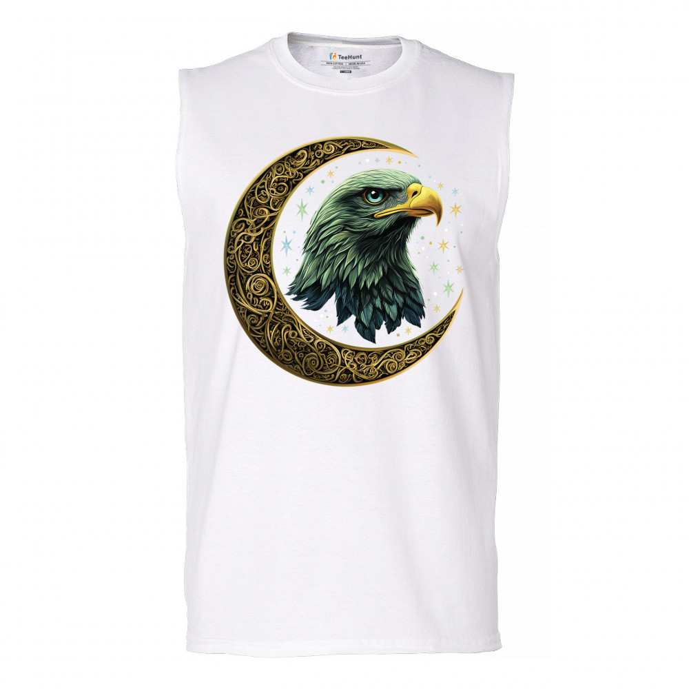 Majestic eagle in golden Celtic moon with stars—symbol of strength, vision, and freedom. Perfect for patriots, spiritual seekers, and nature lovers.