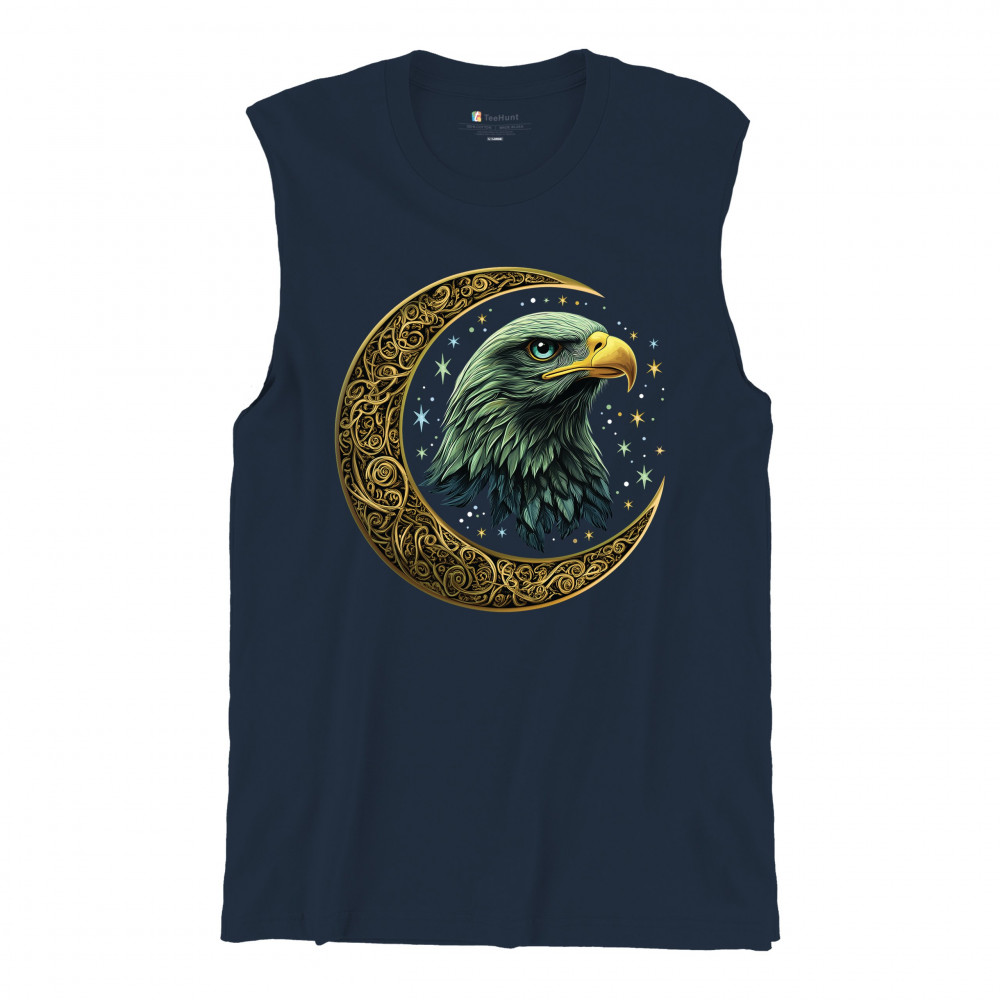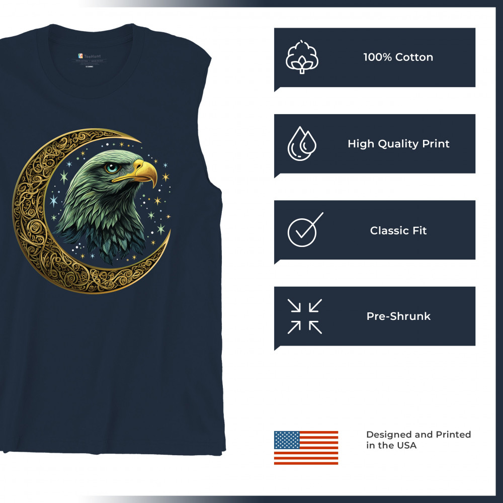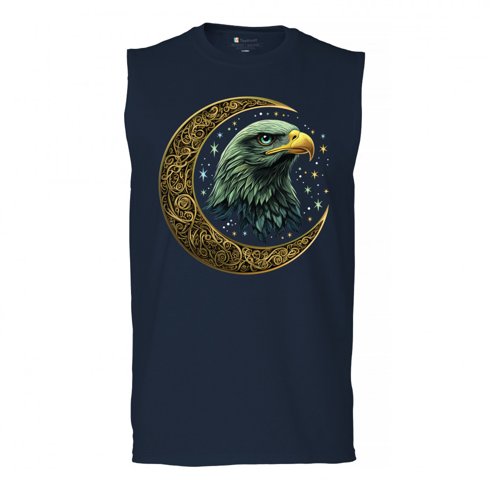 Majestic eagle in golden Celtic moon with stars—symbol of strength, vision, and freedom. Perfect for patriots, spiritual seekers, and nature lovers.