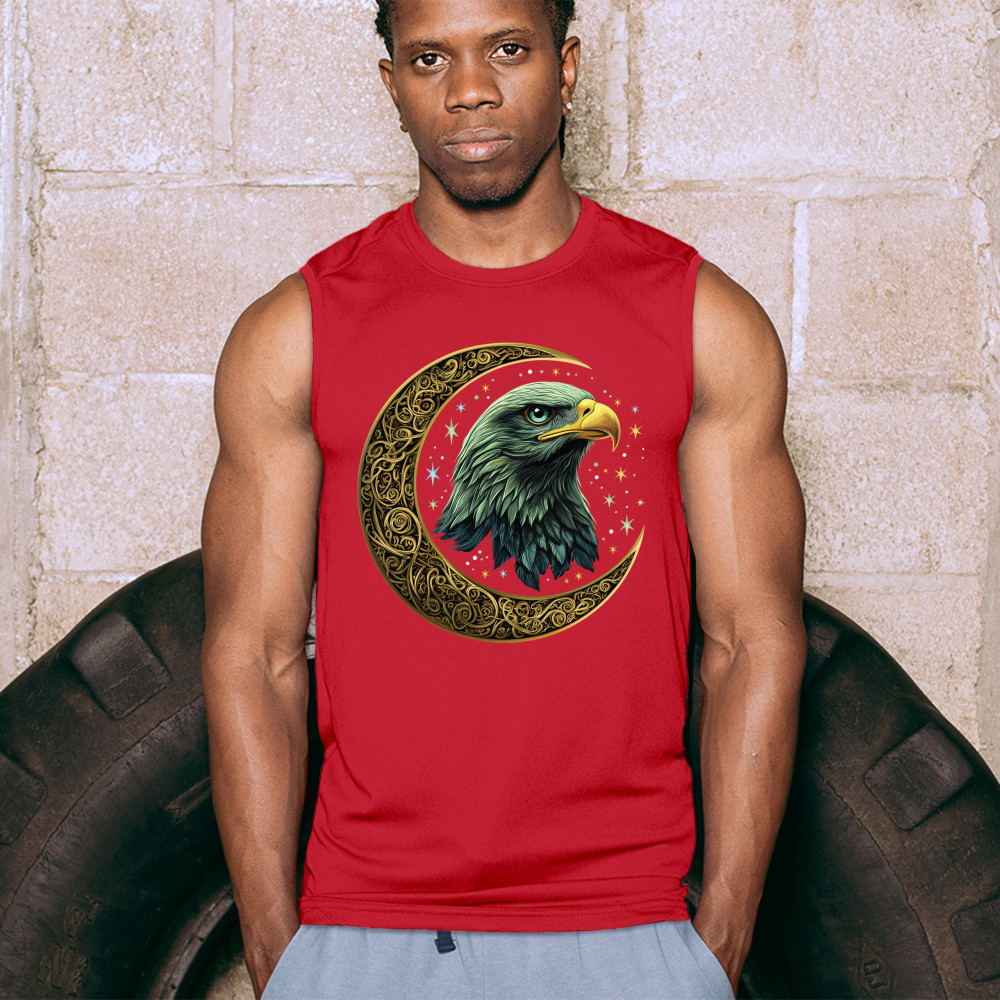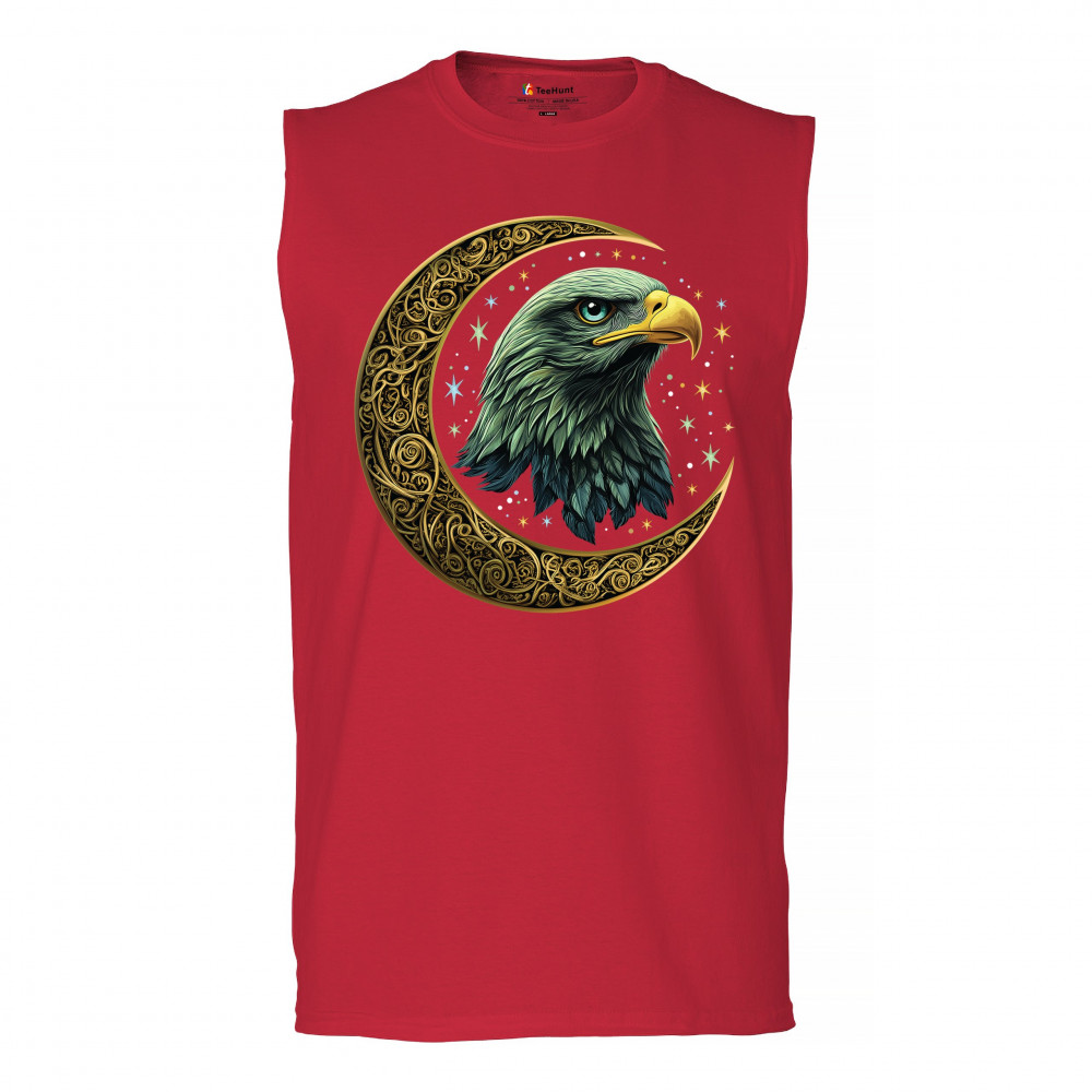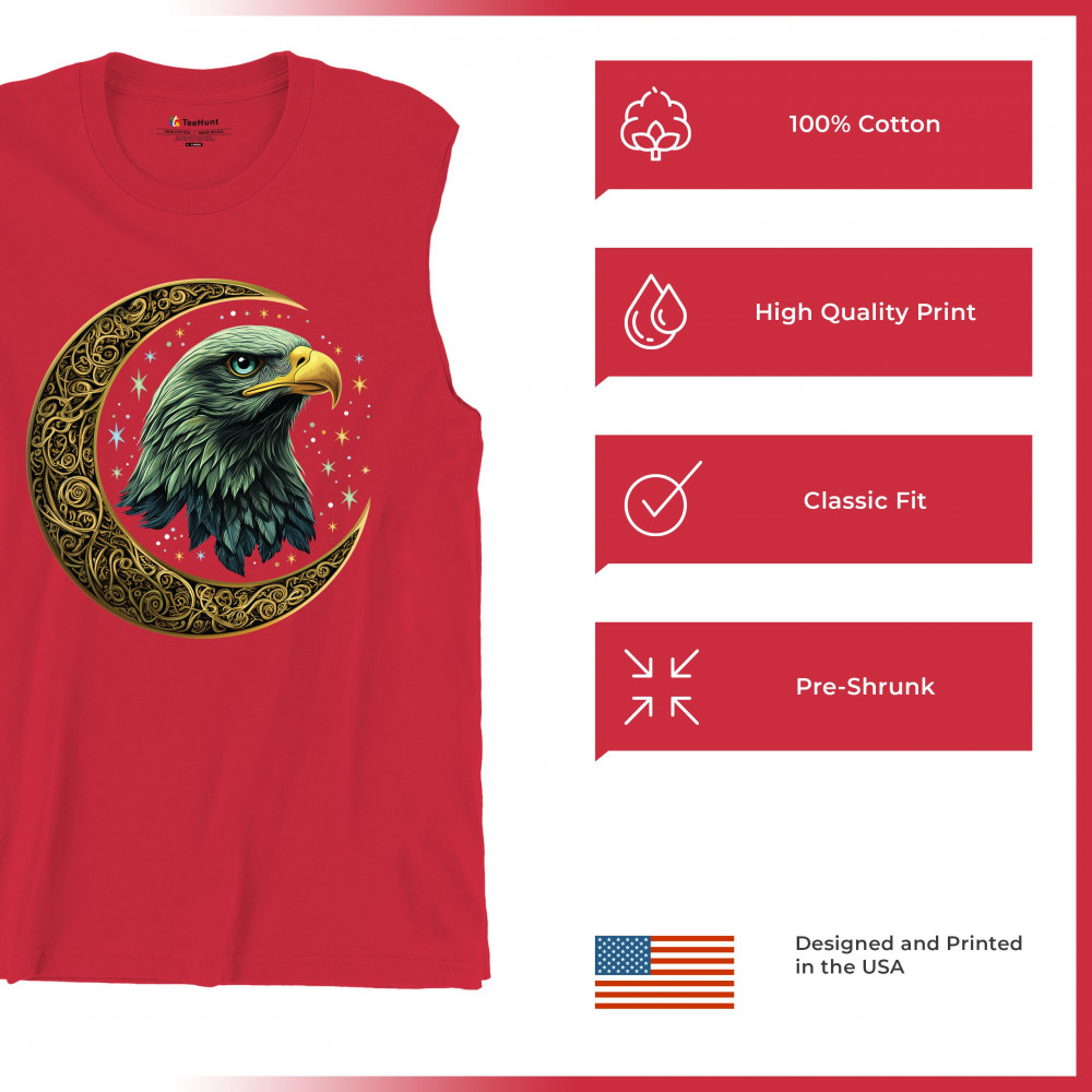 Majestic eagle in golden Celtic moon with stars—symbol of strength, vision, and freedom. Perfect for patriots, spiritual seekers, and nature lovers.
