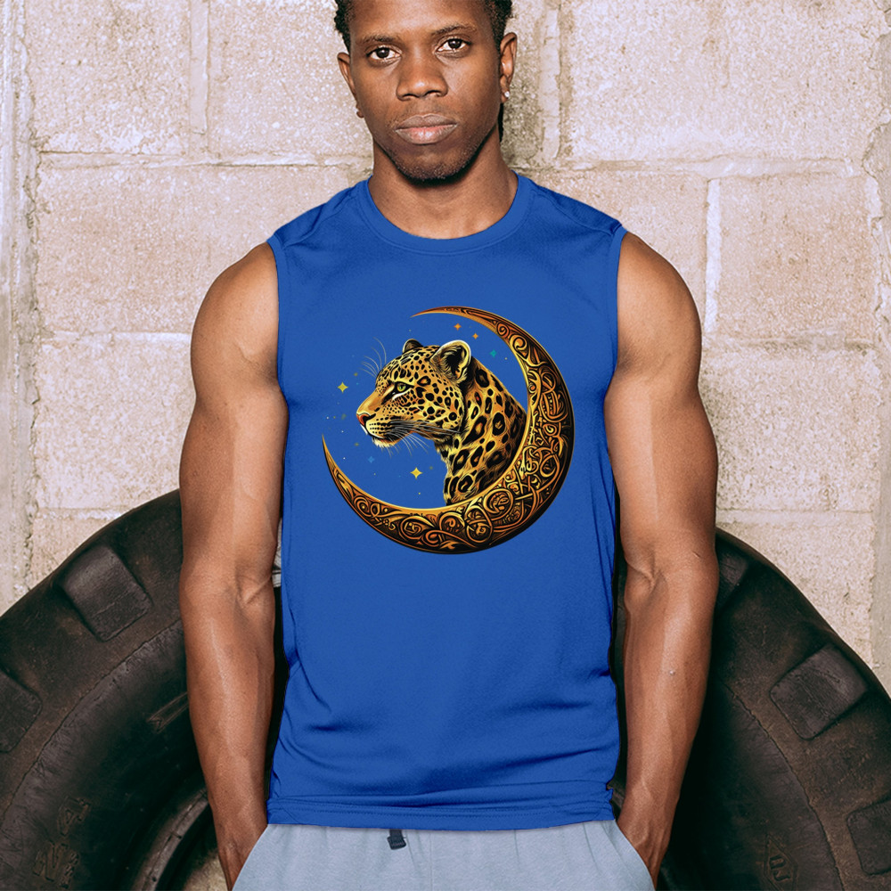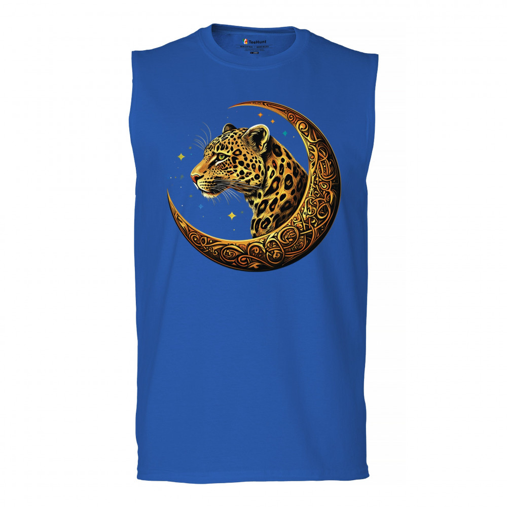 Unleash wild energy and spiritual symbolism with this bold leopard design set inside a golden Celtic crescent moon. A cosmic starry background amplifies its mystical vibe, symbolizing agility, independence, and awareness. Perfect for big cat lovers, jungle animal fans, and seekers of fantasy or tribal-inspired art.