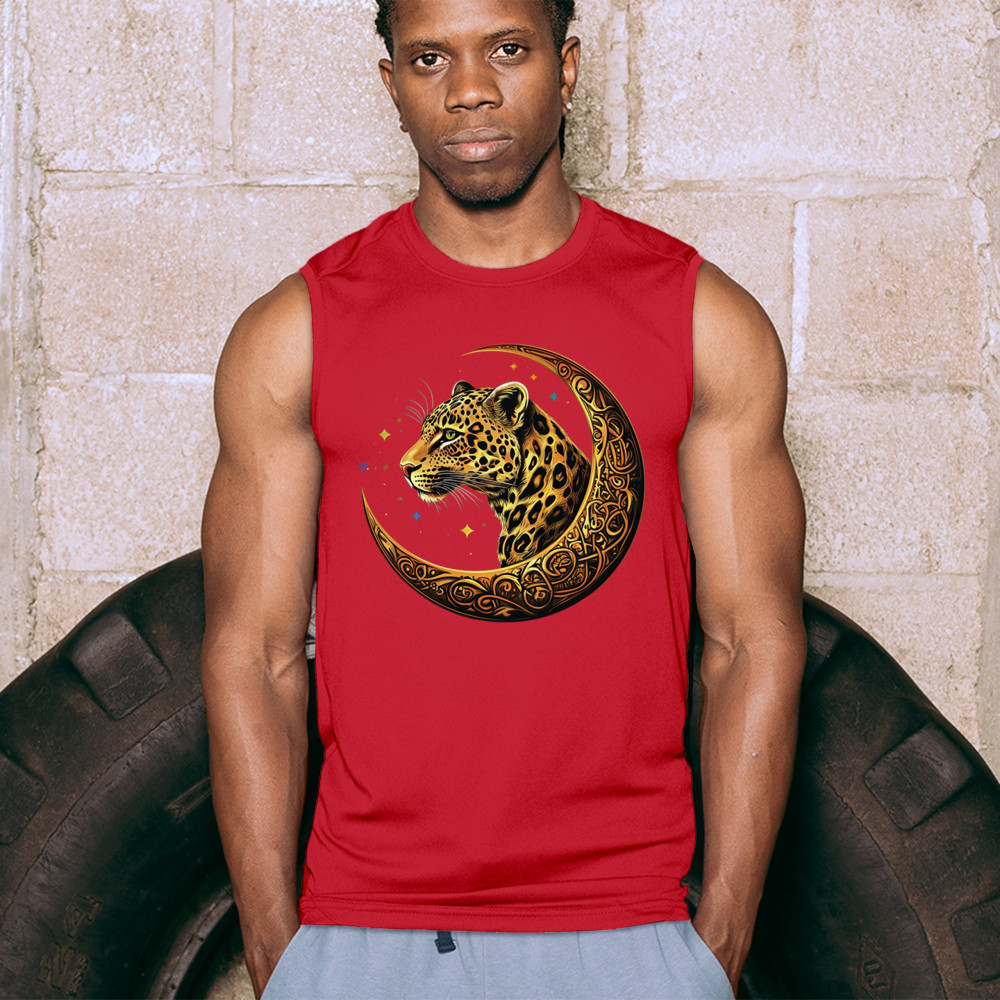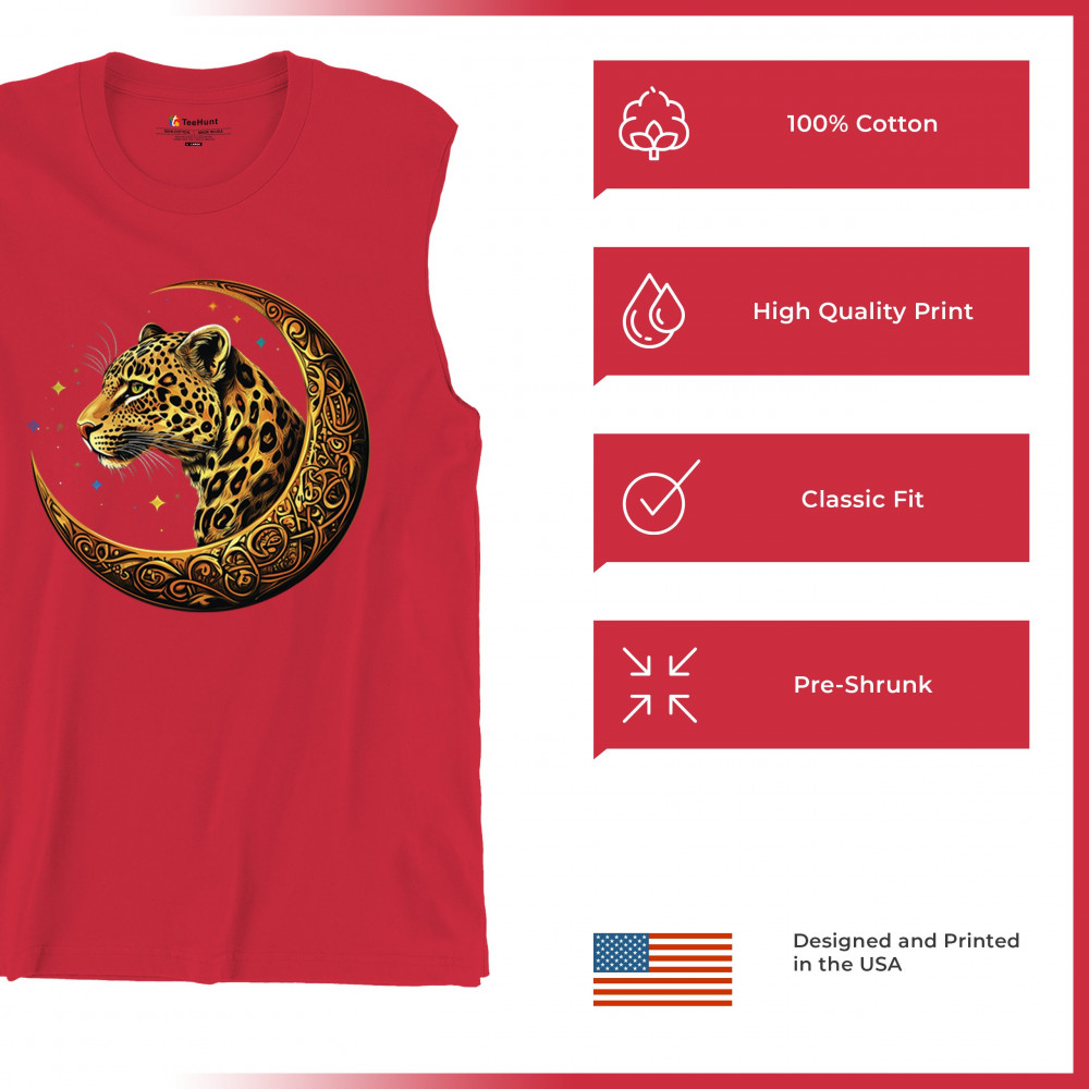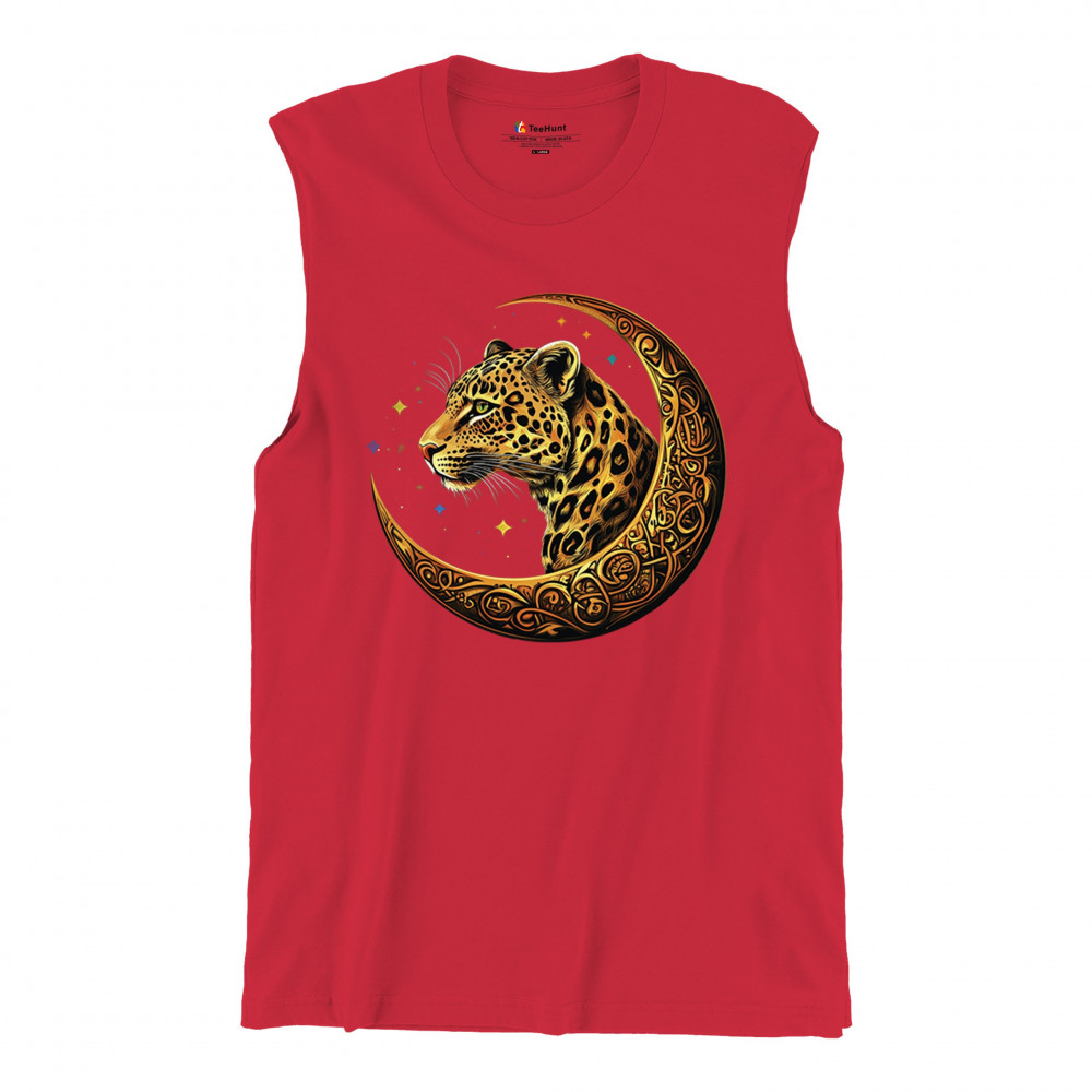 Unleash wild energy and spiritual symbolism with this bold leopard design set inside a golden Celtic crescent moon. A cosmic starry background amplifies its mystical vibe, symbolizing agility, independence, and awareness. Perfect for big cat lovers, jungle animal fans, and seekers of fantasy or tribal-inspired art.