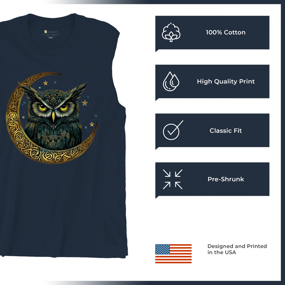 Cosmic owl in Celtic crescent moon—symbol of wisdom, night mystery, and spirit. Perfect for mystics, owl lovers, and fantasy fans.