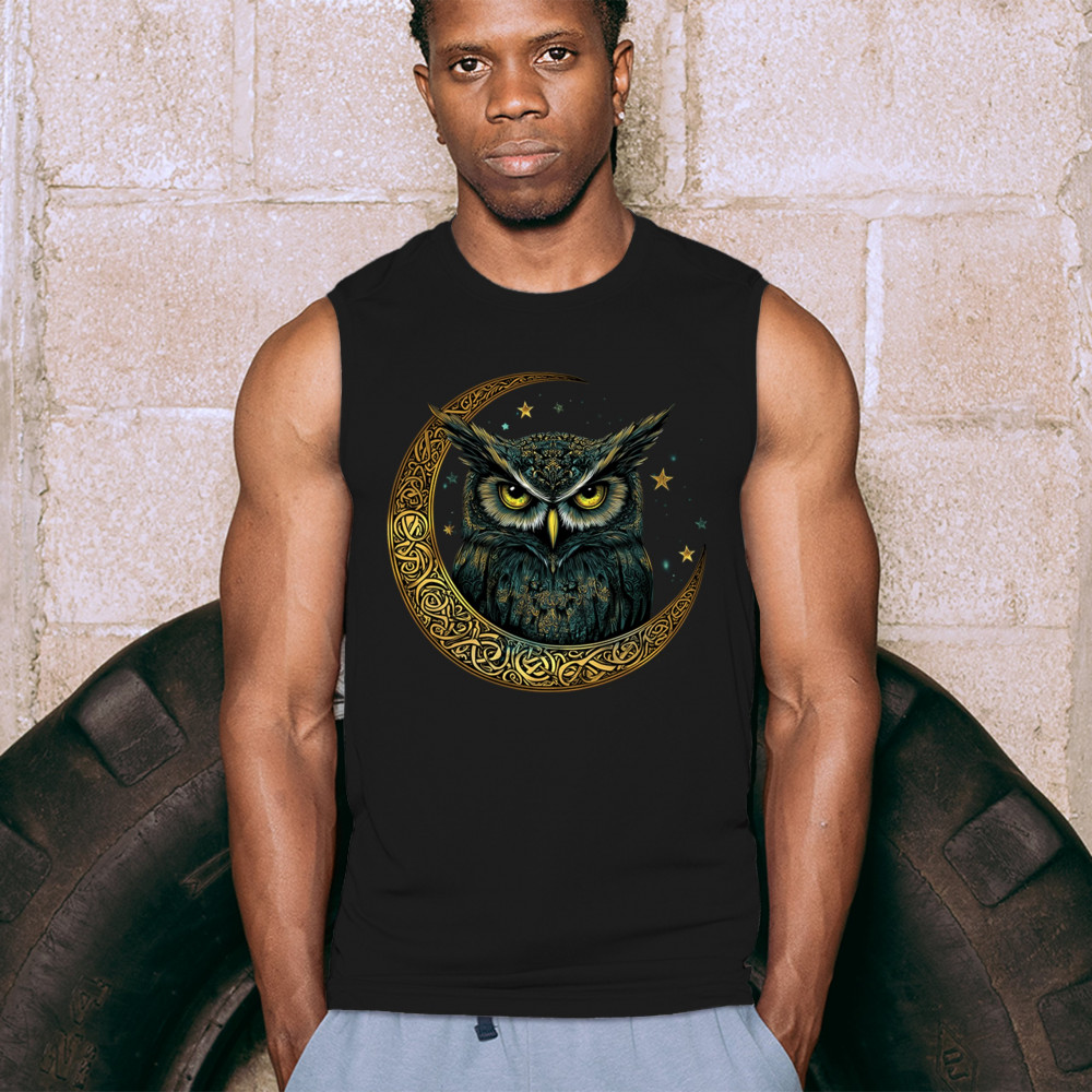 CELTIC MOON OWL muscle shirt mystic night bird spiritual wisdom symbol men's black