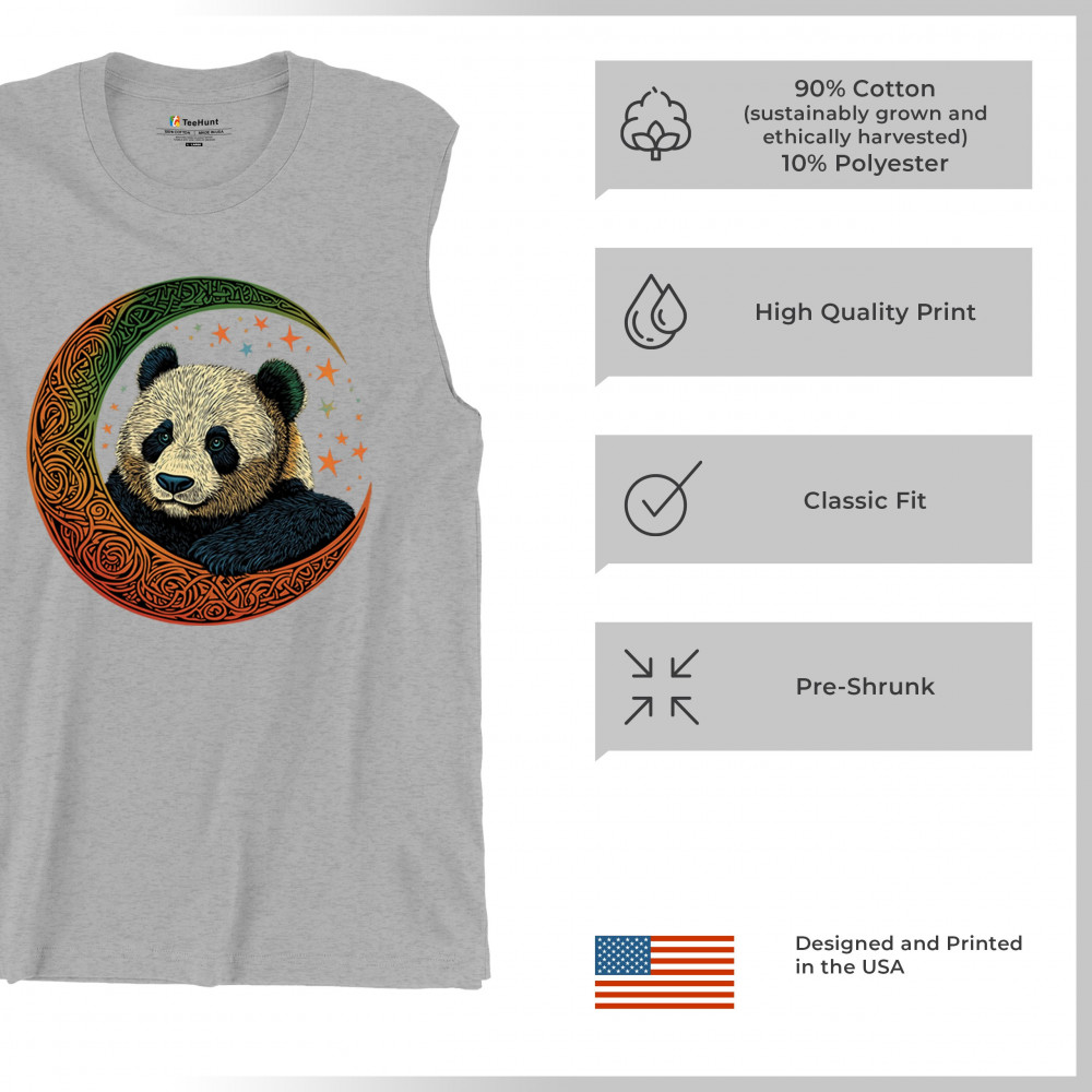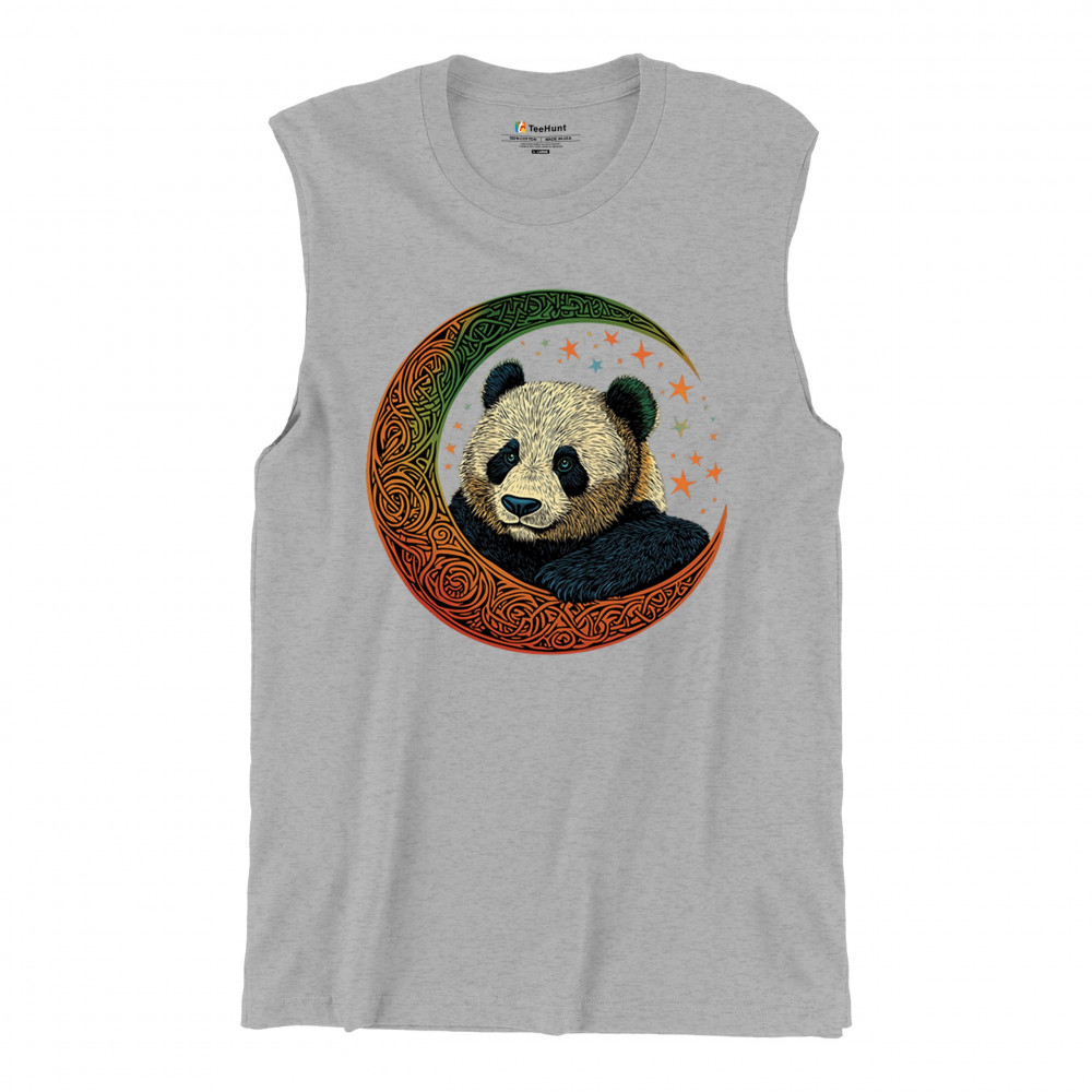 Peaceful panda in Celtic crescent moon design—symbol of harmony, balance, and spiritual calm for nature lovers, mystics, and gentle souls.