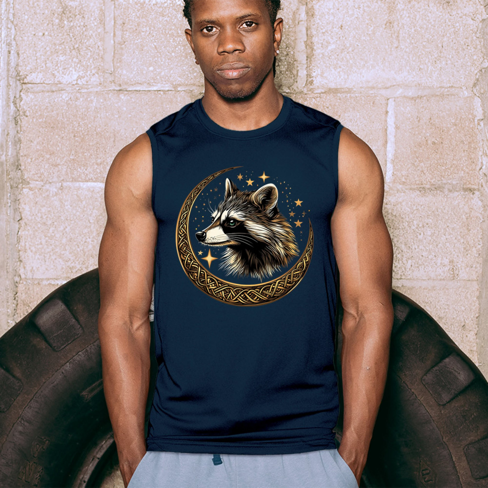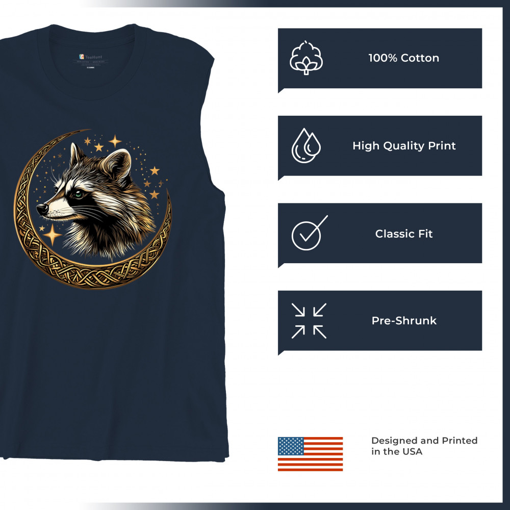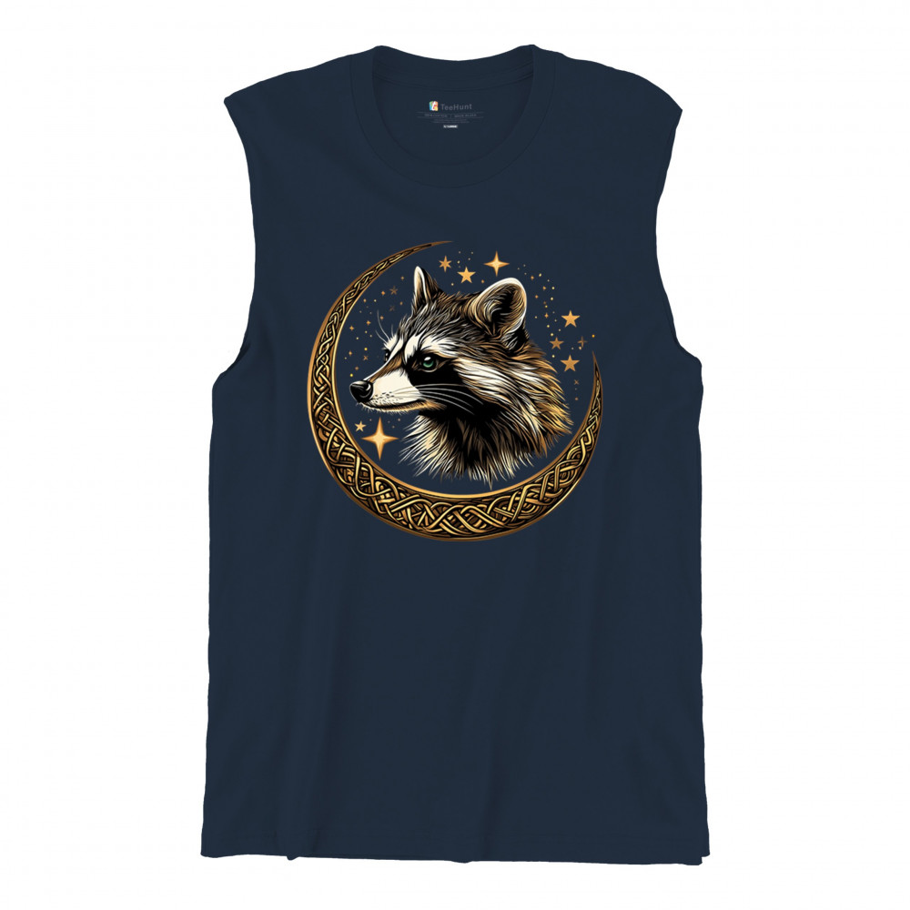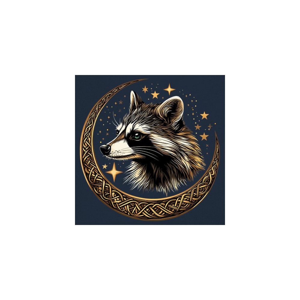 Cosmic raccoon design in Celtic moon. Symbol of adaptability, mystery, and spiritual intelligence. A perfect gift for wild and curious souls.