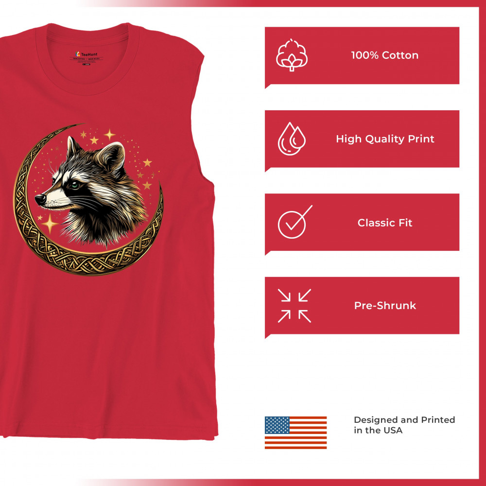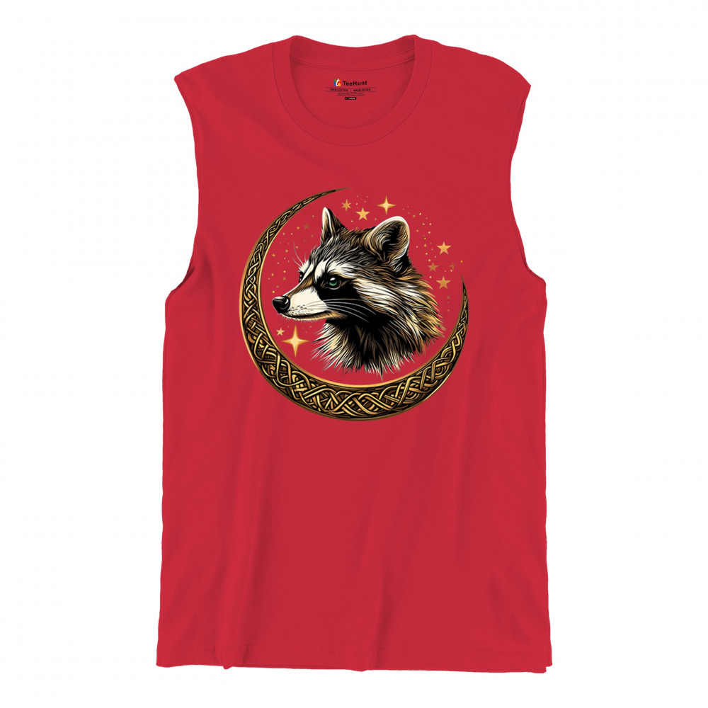Cosmic raccoon design in Celtic moon. Symbol of adaptability, mystery, and spiritual intelligence. A perfect gift for wild and curious souls.