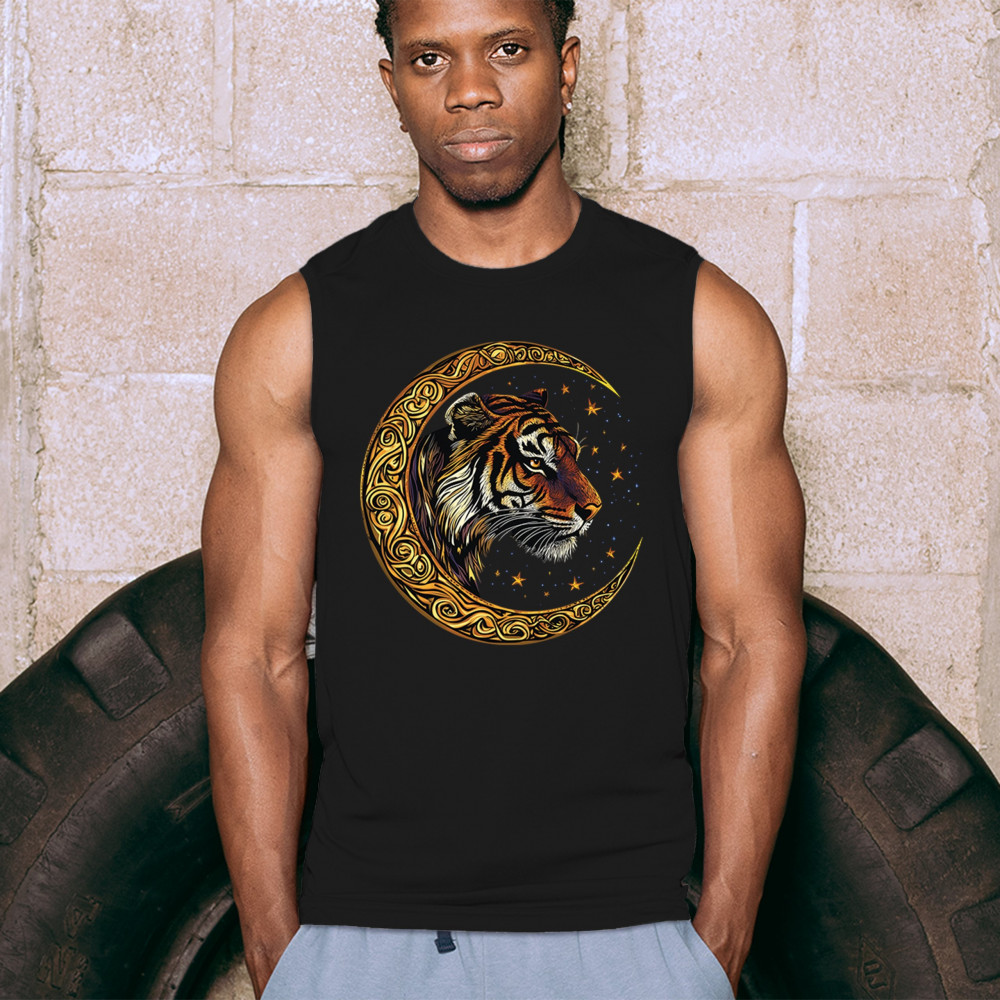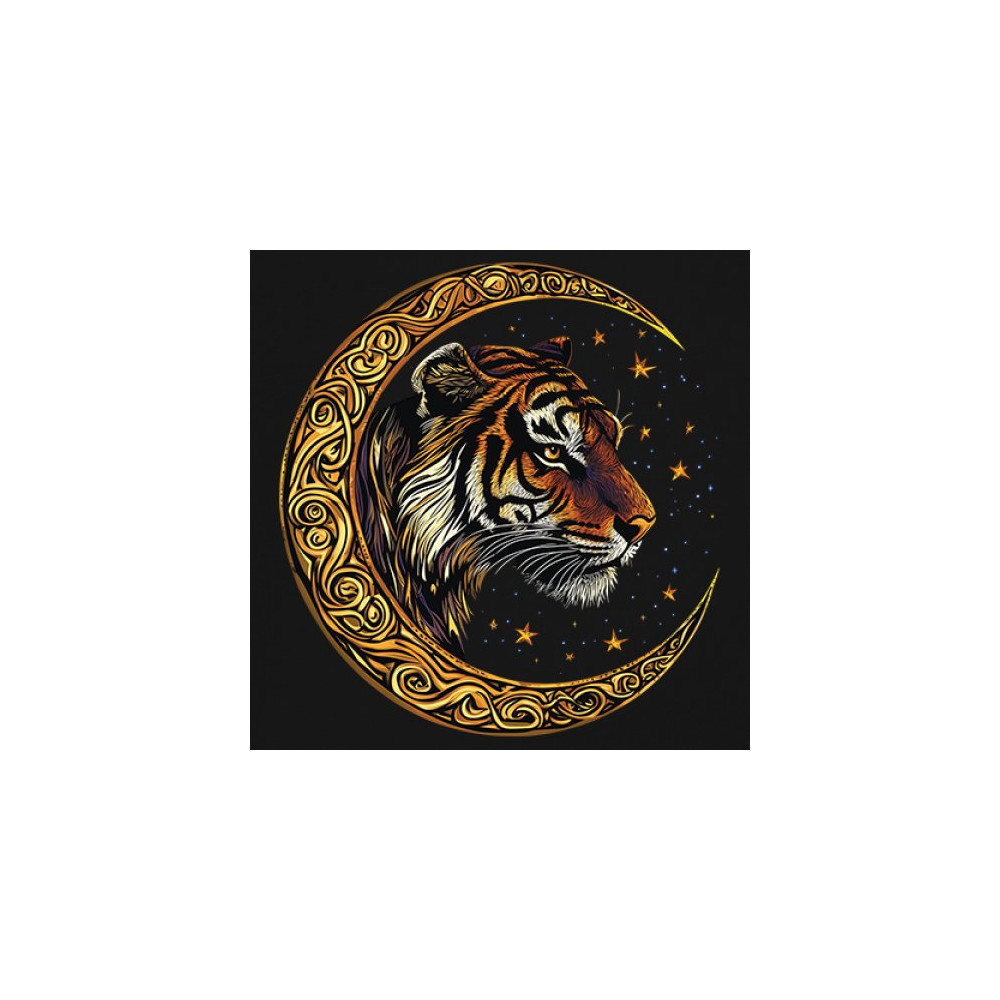 Bold tiger design in Celtic moon with cosmic sky. Symbol of strength, instinct, and jungle mysticism. Great for animal lovers and fantasy fans.
