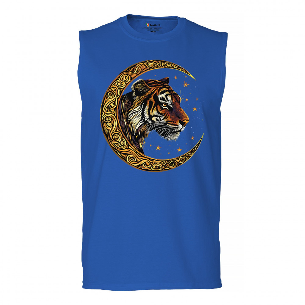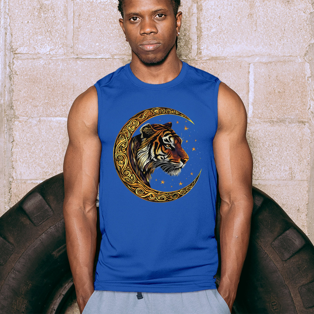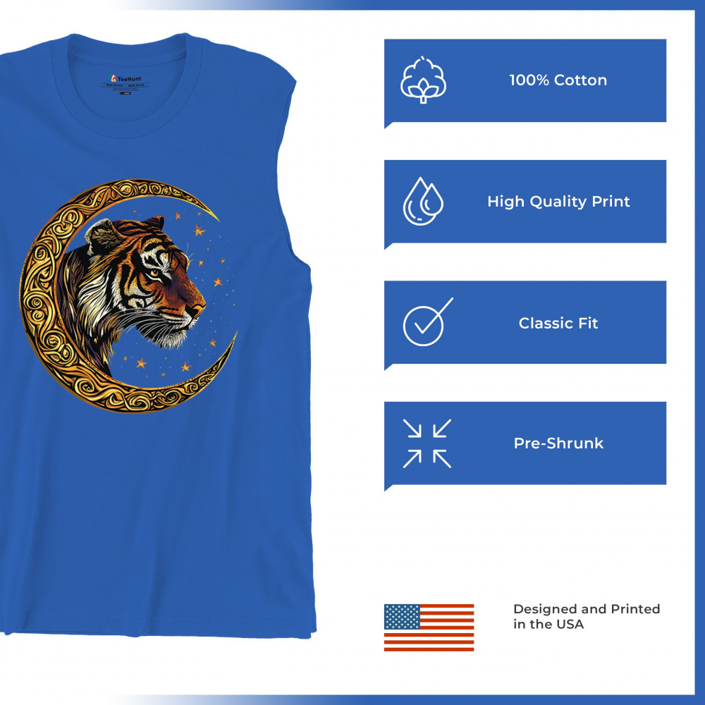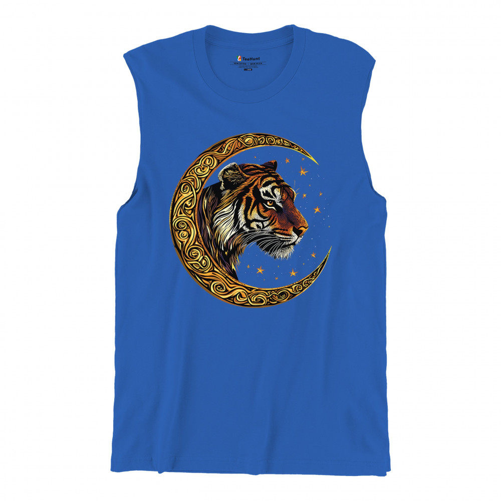 Bold tiger design in Celtic moon with cosmic sky. Symbol of strength, instinct, and jungle mysticism. Great for animal lovers and fantasy fans.