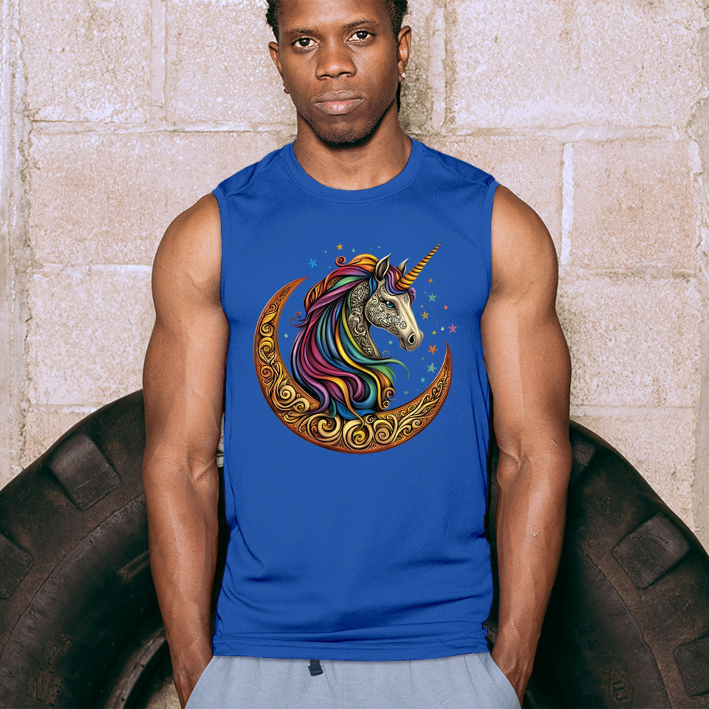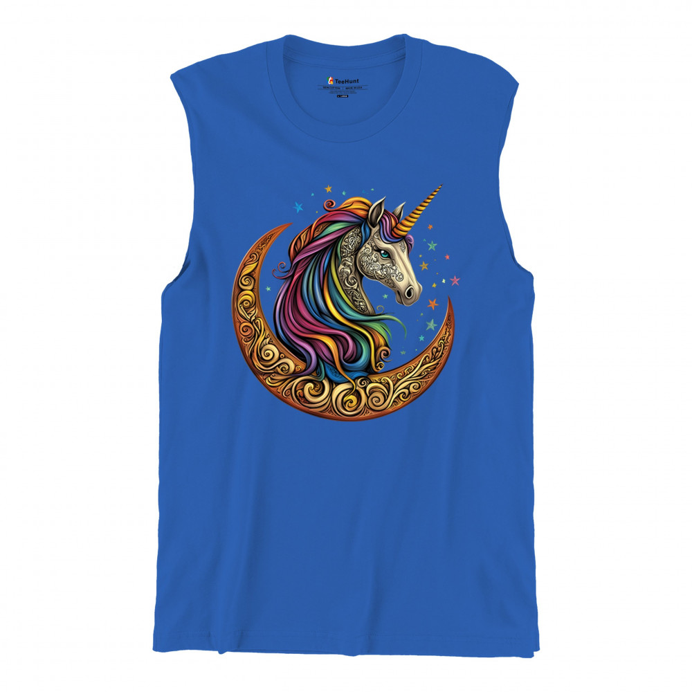 Rainbow-maned unicorn in golden Celtic moon design—perfect for fantasy lovers, dreamers, and unicorn fans who believe in magic and spirit.