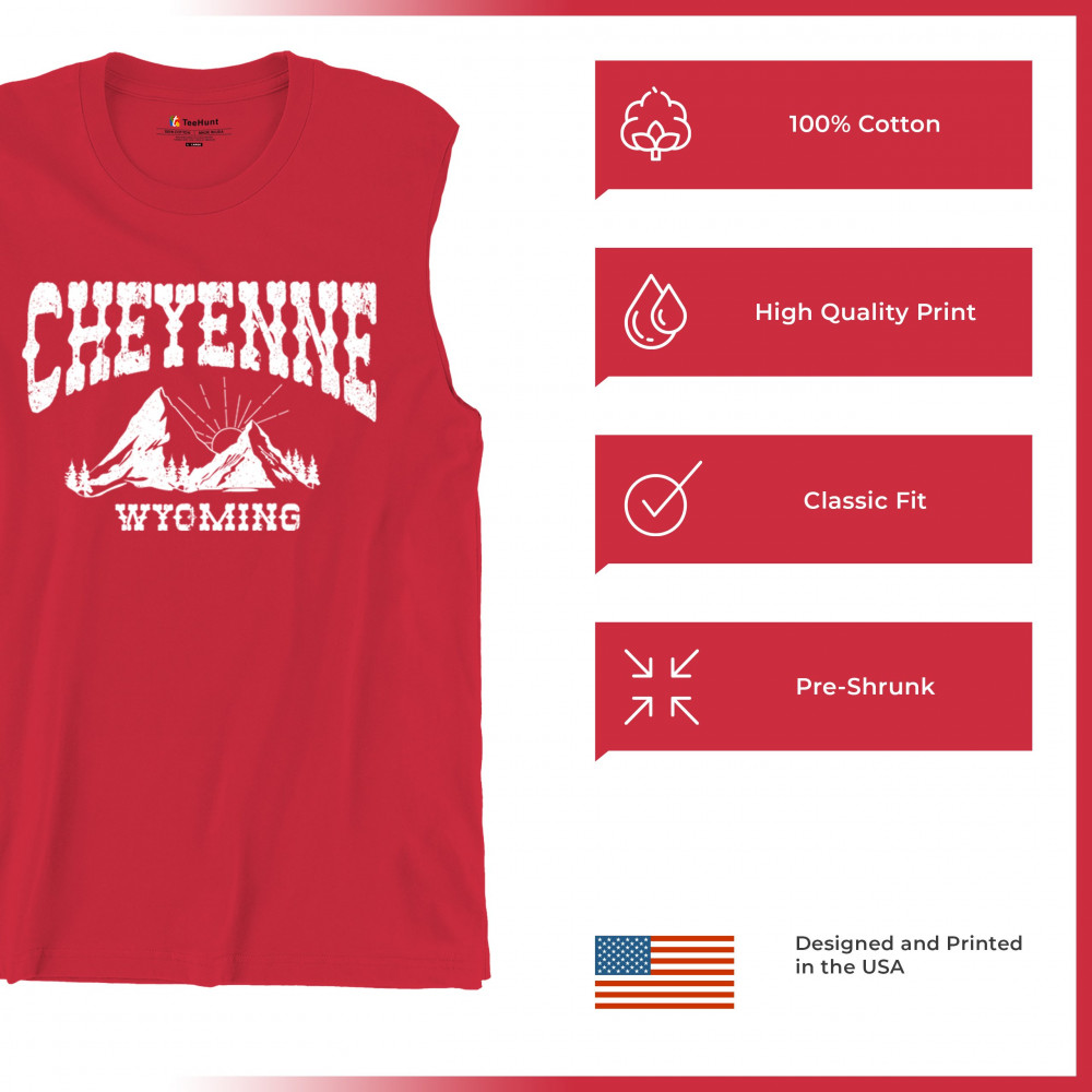 Vintage Cheyenne Wyoming design with mountain sunrise for outdoor lovers and locals. Perfect for travel, hiking, or Western pride.