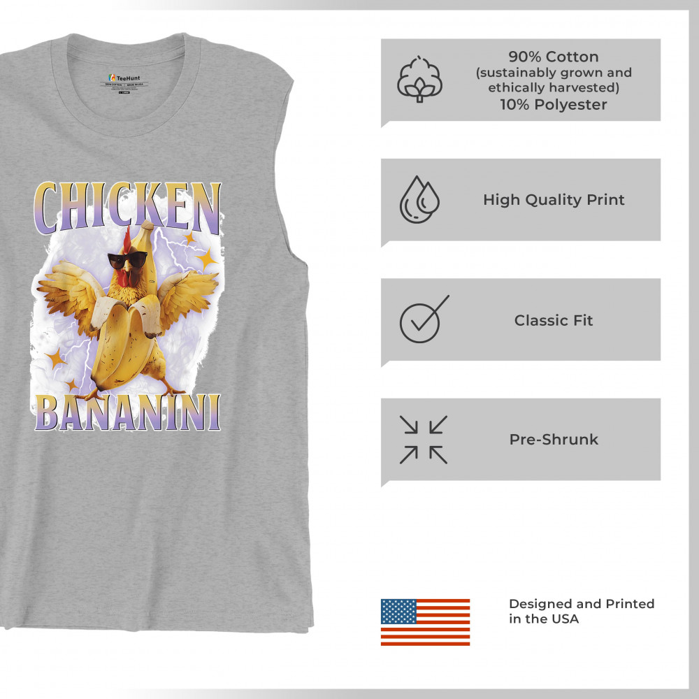 Chicken Bananini is meme absurdity with extra peel. Featuring a chicken emerging from a banana and rocking shades, this design blends cursed-core fashion, viral animal humor, Gen Z brainrot, and TikTok-style chaos. A must-have for fans of ironic mashups, surreal creatures, and internet-fueled nonsense.