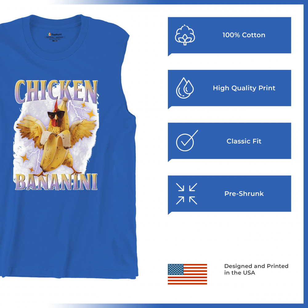 Chicken Bananini is meme absurdity with extra peel. Featuring a chicken emerging from a banana and rocking shades, this design blends cursed-core fashion, viral animal humor, Gen Z brainrot, and TikTok-style chaos. A must-have for fans of ironic mashups, surreal creatures, and internet-fueled nonsense.