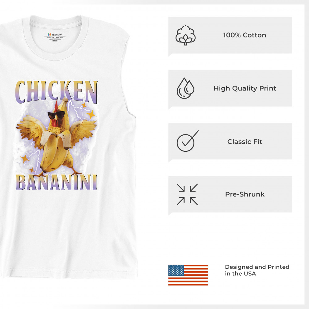 Chicken Bananini is meme absurdity with extra peel. Featuring a chicken emerging from a banana and rocking shades, this design blends cursed-core fashion, viral animal humor, Gen Z brainrot, and TikTok-style chaos. A must-have for fans of ironic mashups, surreal creatures, and internet-fueled nonsense.