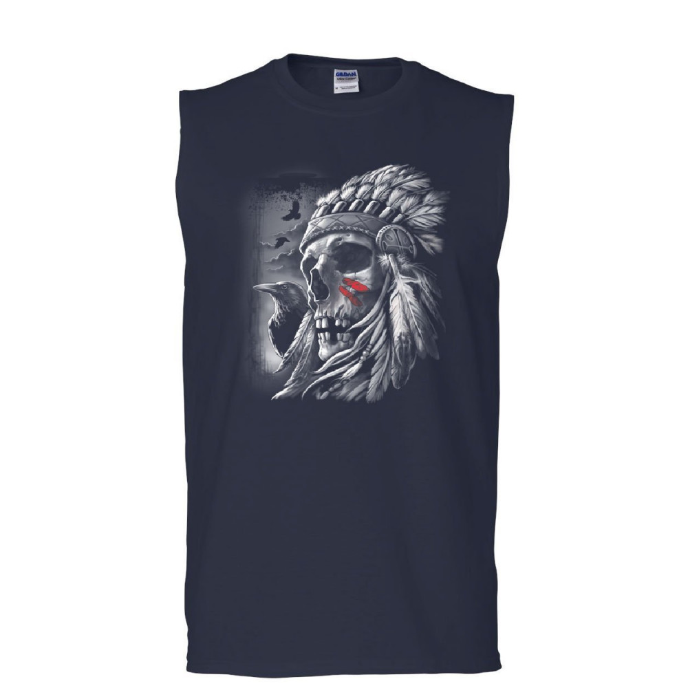 CHIEF SKULL WARBONNET HEADDRESS muscle shirt native american heritage sleeveless navy blue