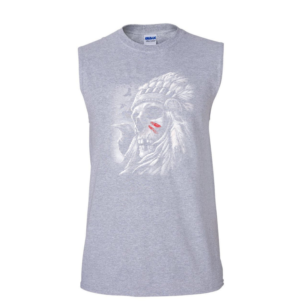 CHIEF SKULL WARBONNET HEADDRESS muscle shirt native american heritage sleeveless gray