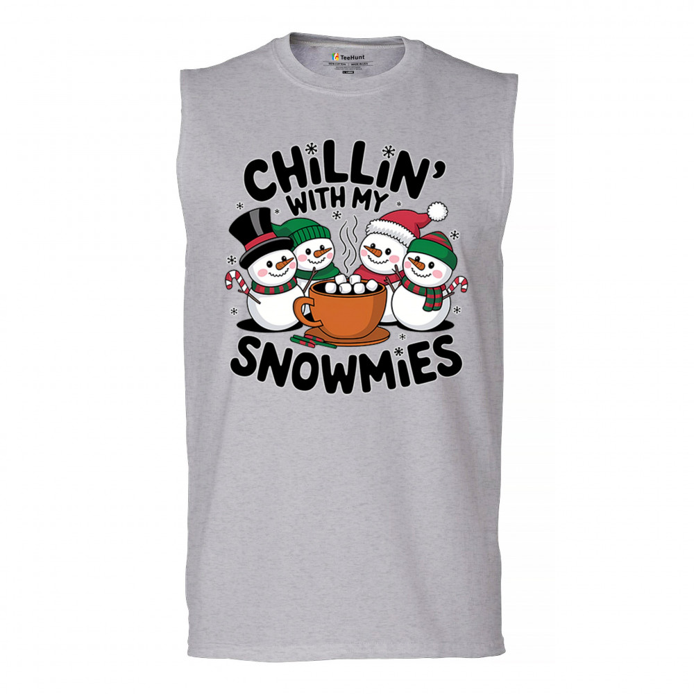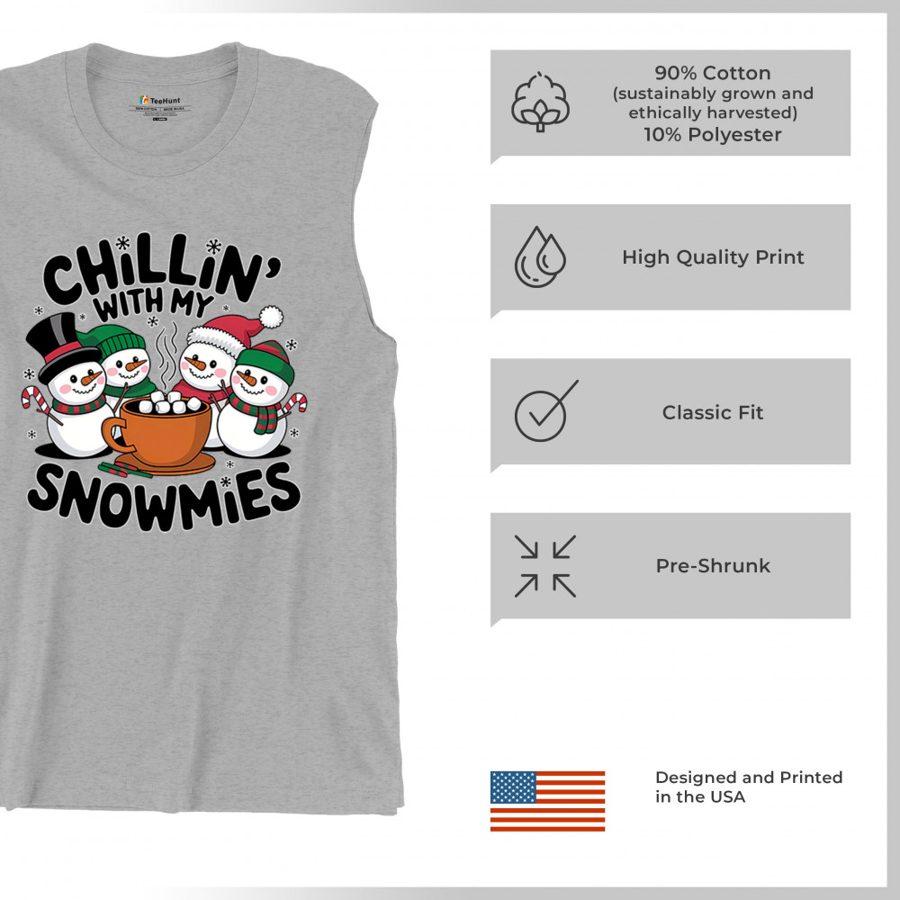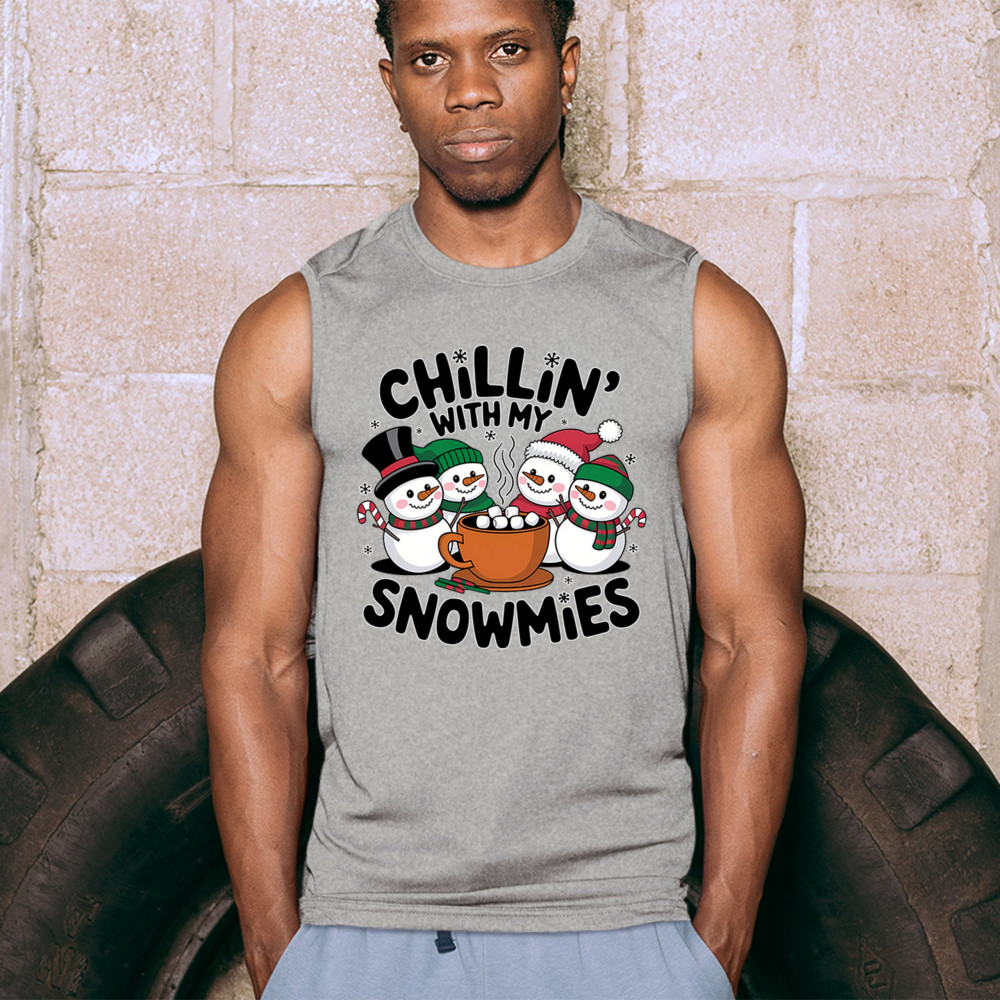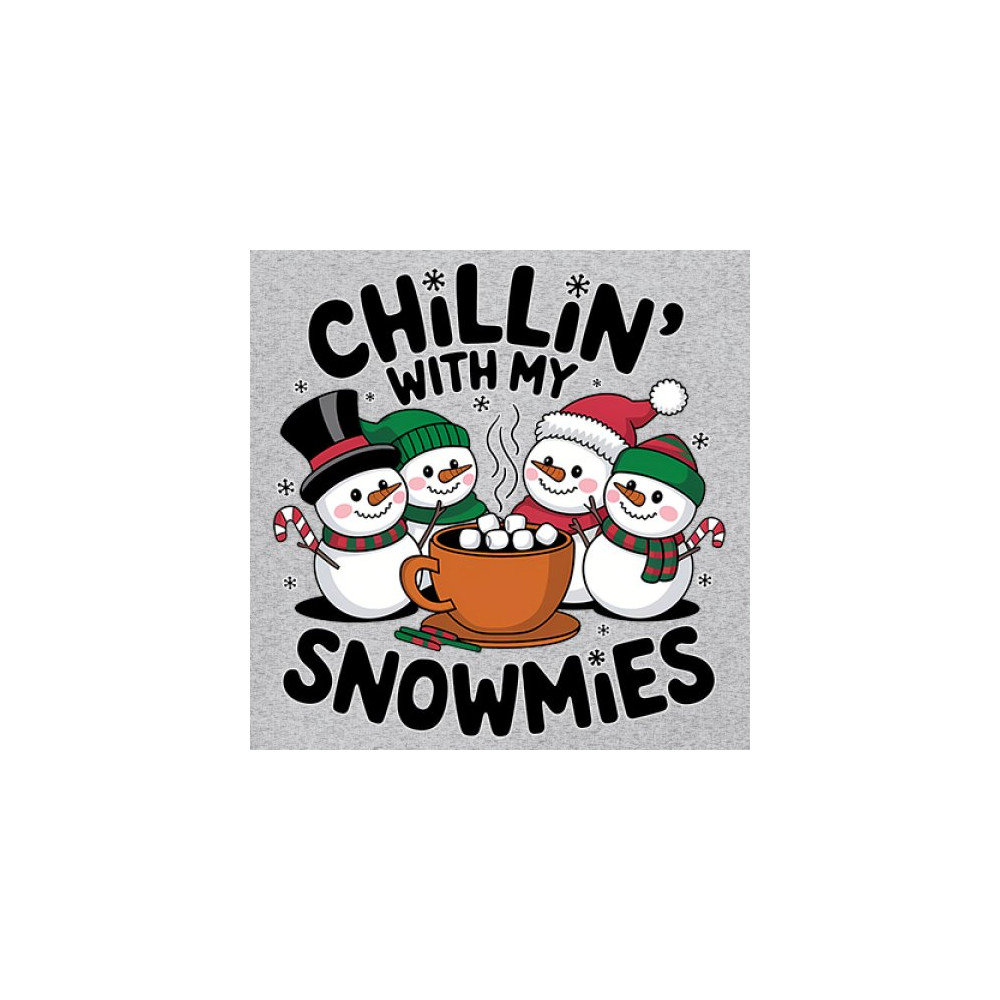 A cute and cheerful winter design showing happy snowmen sharing hot cocoa, perfect for Christmas gatherings, holiday events, seasonal photos, white-elephant gifting, festive family nights, winter celebrations, cozy weekend vibes, and fans of playful holiday humor. A fun graphic for anyone who loves bright and friendly Christmas styles.
