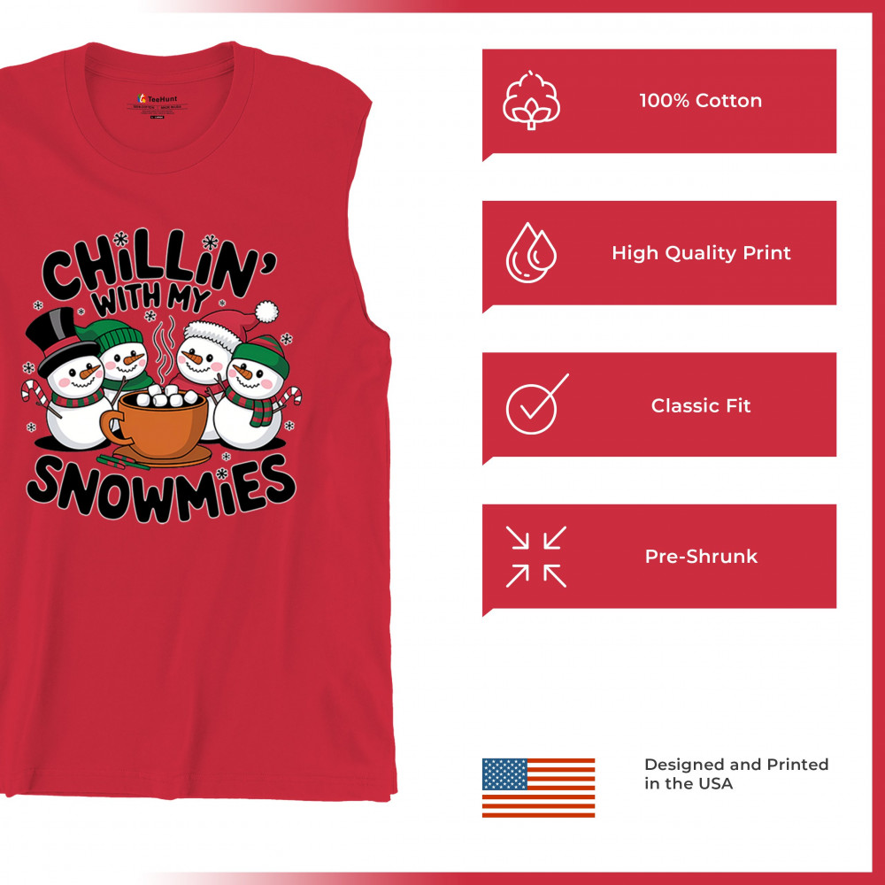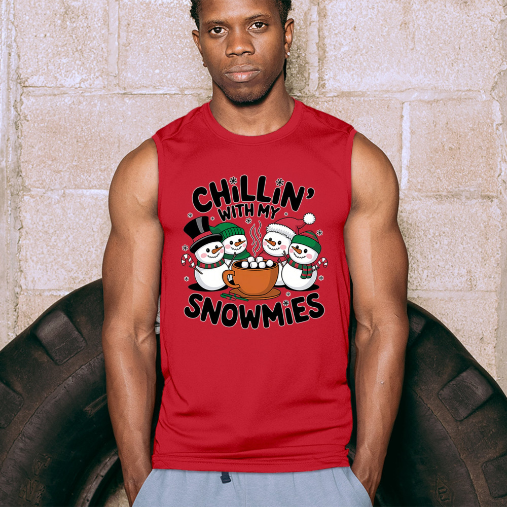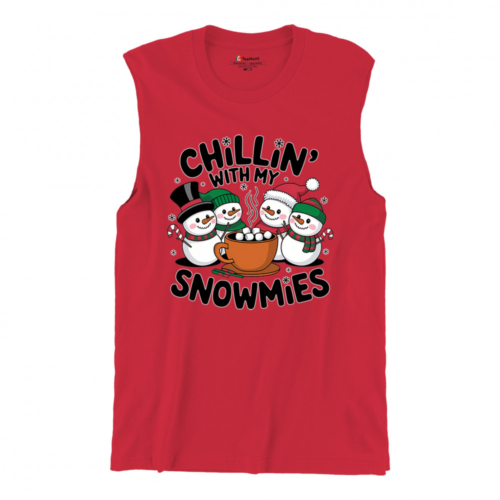 A cute and cheerful winter design showing happy snowmen sharing hot cocoa, perfect for Christmas gatherings, holiday events, seasonal photos, white-elephant gifting, festive family nights, winter celebrations, cozy weekend vibes, and fans of playful holiday humor. A fun graphic for anyone who loves bright and friendly Christmas styles.