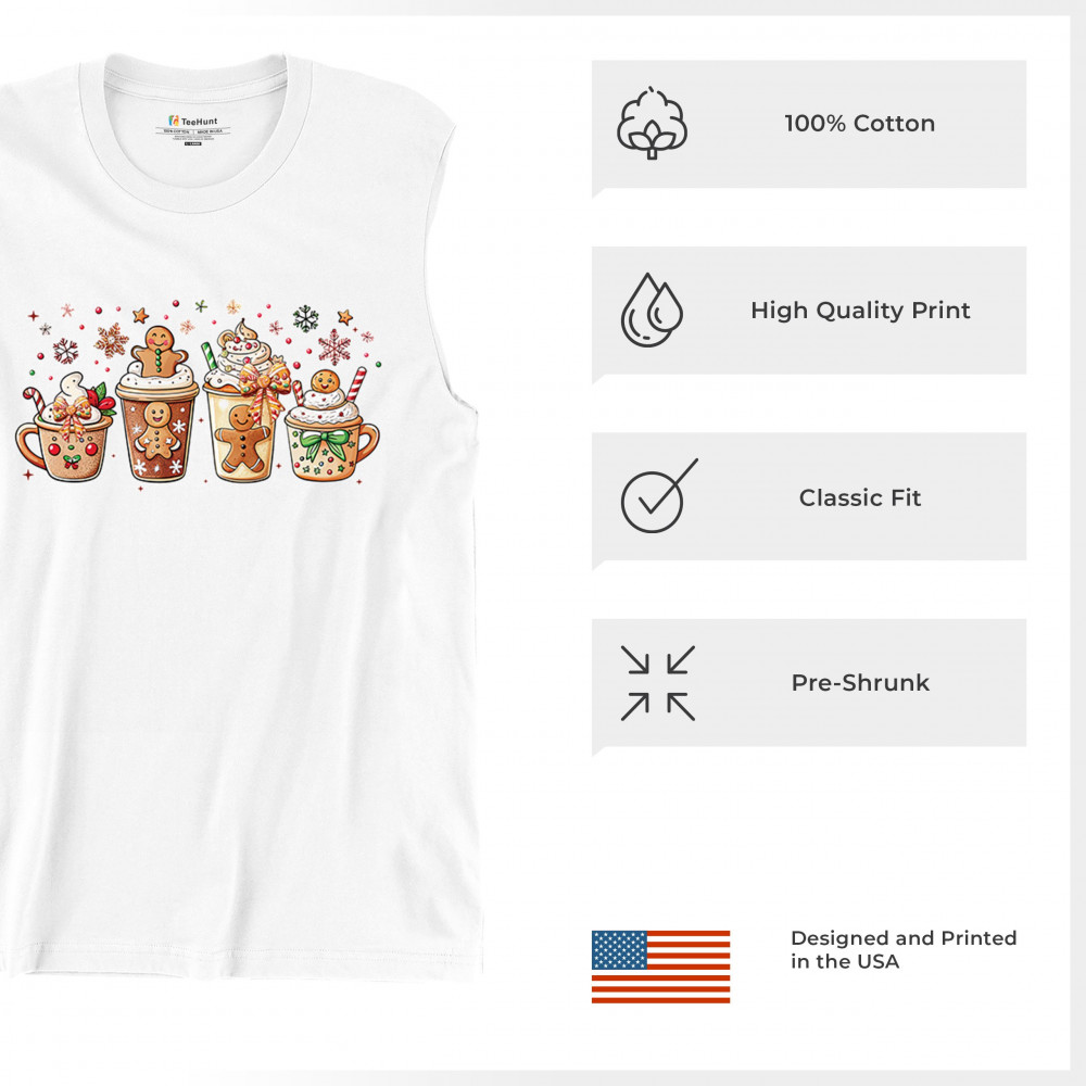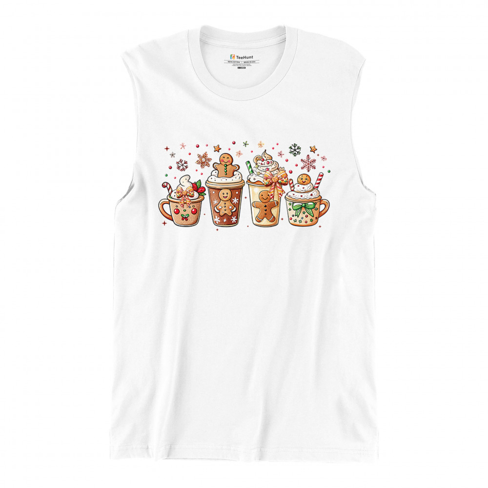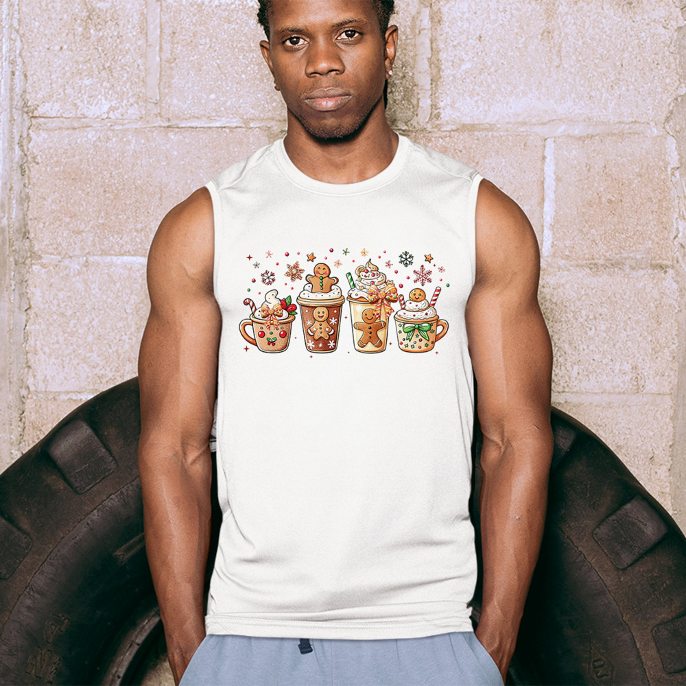 This cute Christmas drink design showcases gingerbread mugs, whipped cream, candy canes, sprinkles, and festive decorations for a warm winter aesthetic. Perfect for cocoa lovers, coffee fans, bakers, cozy holiday nights, gift exchanges, Christmas morning vibes, seasonal parties, and anyone who loves adorable dessert-inspired holiday art.