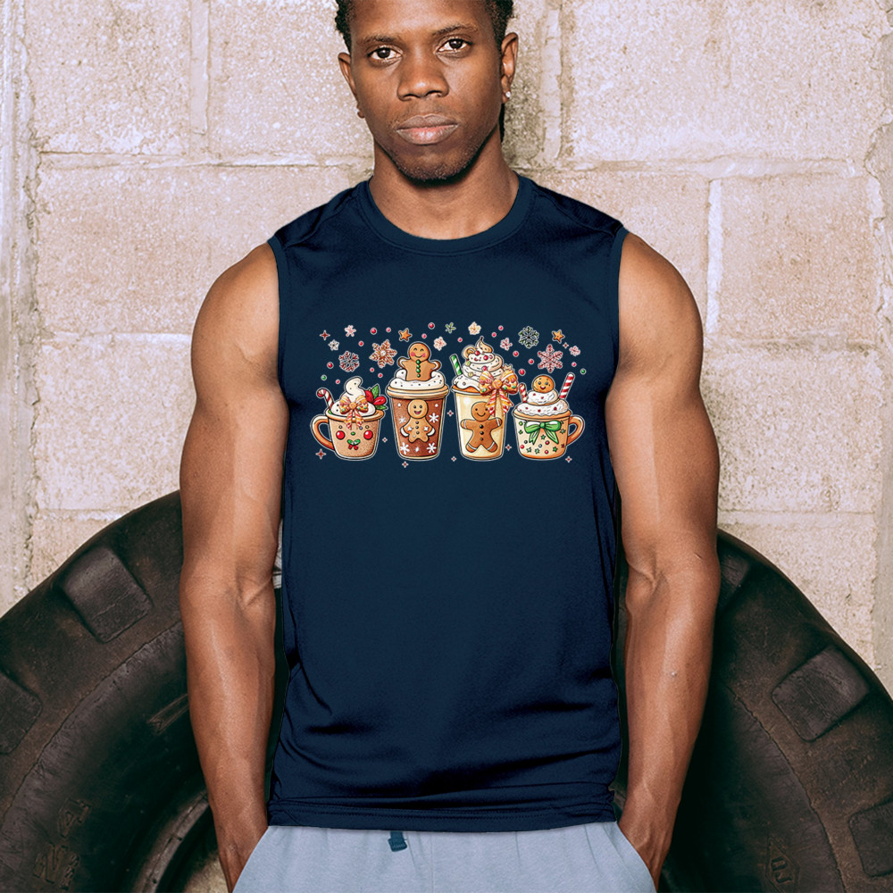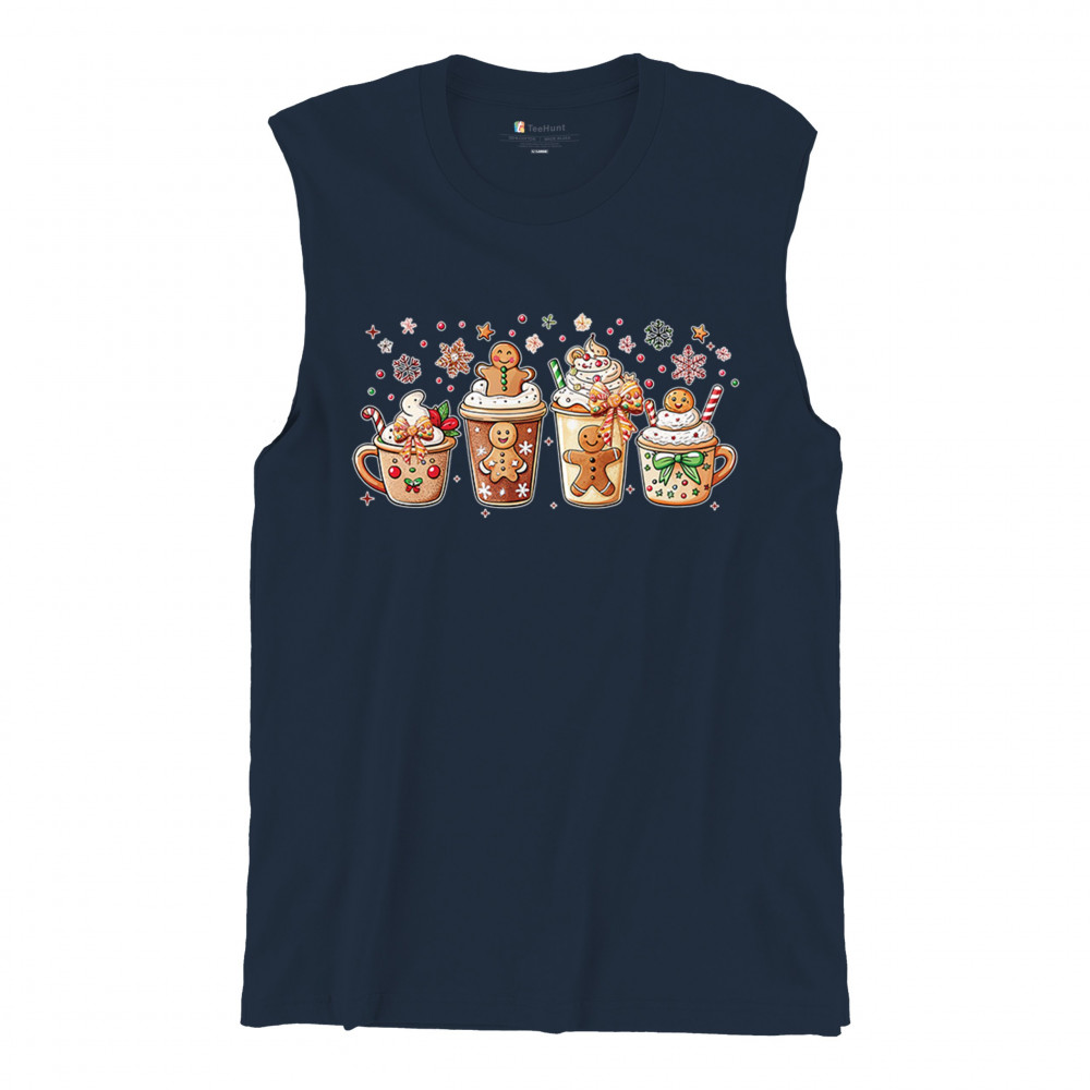 This cute Christmas drink design showcases gingerbread mugs, whipped cream, candy canes, sprinkles, and festive decorations for a warm winter aesthetic. Perfect for cocoa lovers, coffee fans, bakers, cozy holiday nights, gift exchanges, Christmas morning vibes, seasonal parties, and anyone who loves adorable dessert-inspired holiday art.