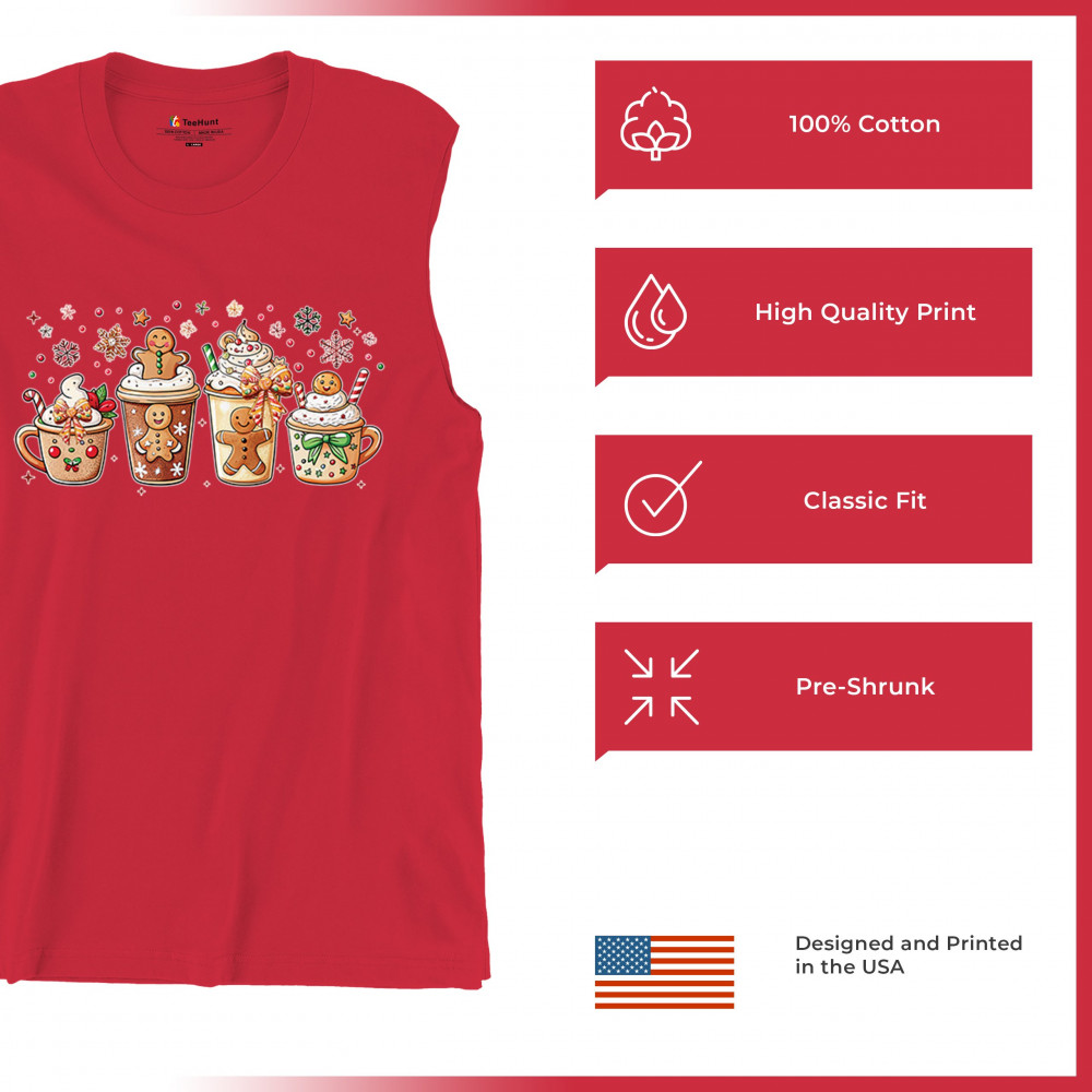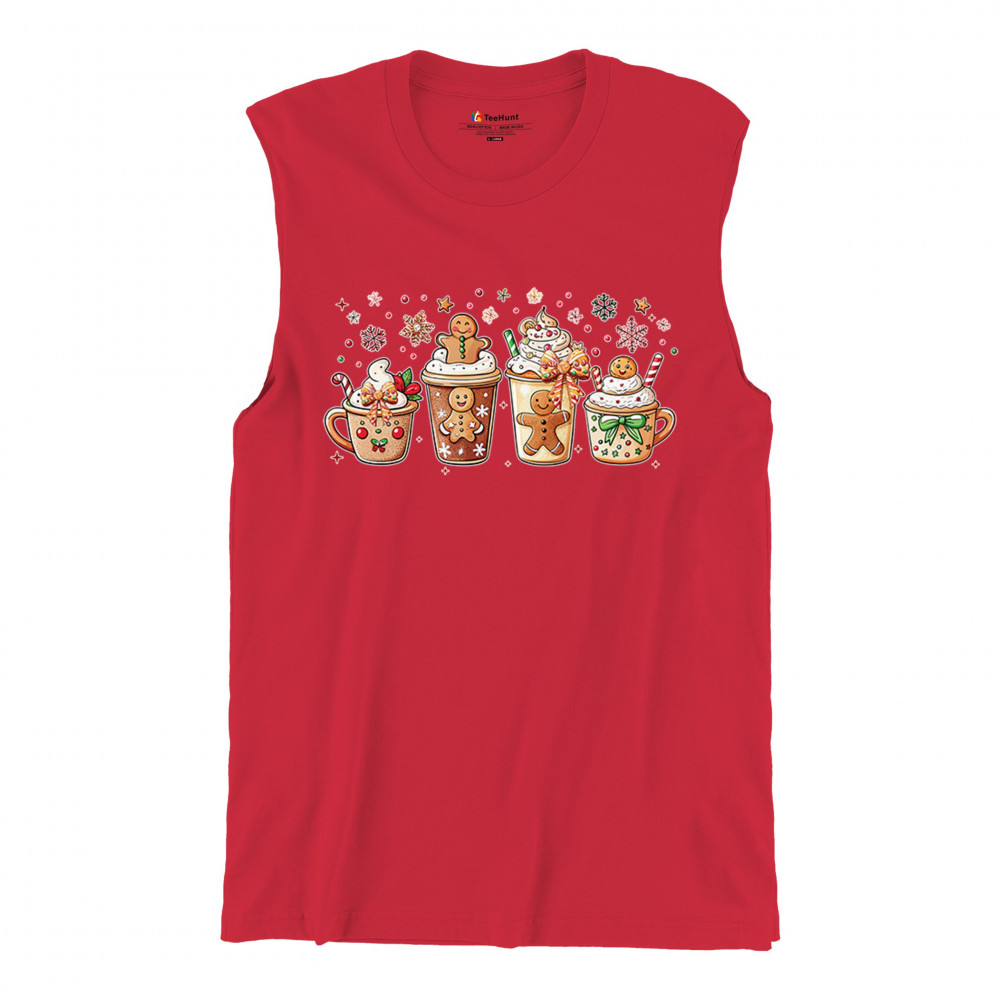 This cute Christmas drink design showcases gingerbread mugs, whipped cream, candy canes, sprinkles, and festive decorations for a warm winter aesthetic. Perfect for cocoa lovers, coffee fans, bakers, cozy holiday nights, gift exchanges, Christmas morning vibes, seasonal parties, and anyone who loves adorable dessert-inspired holiday art.