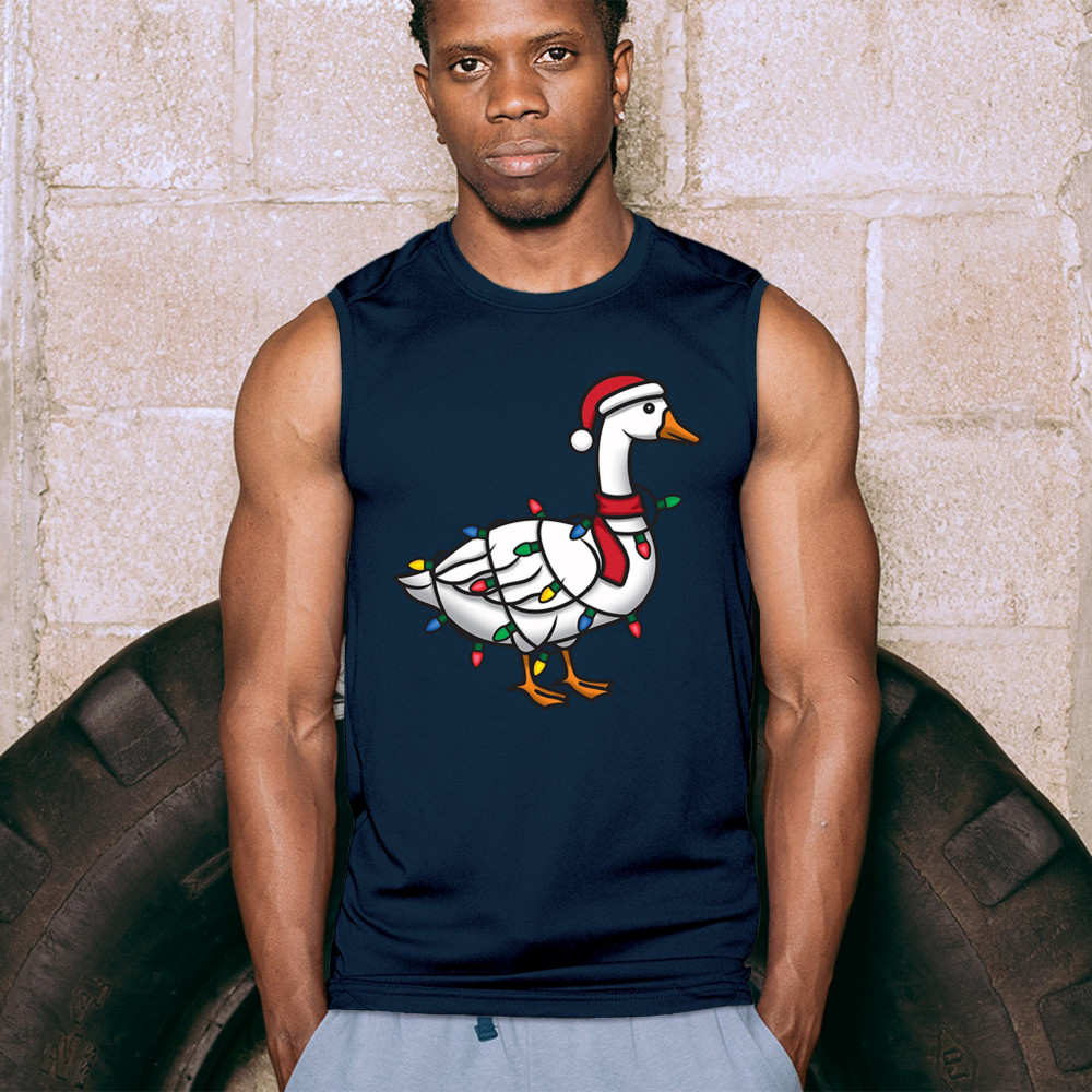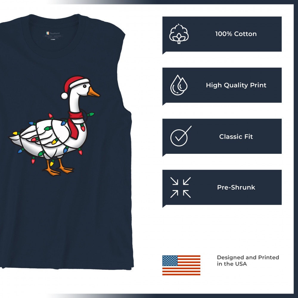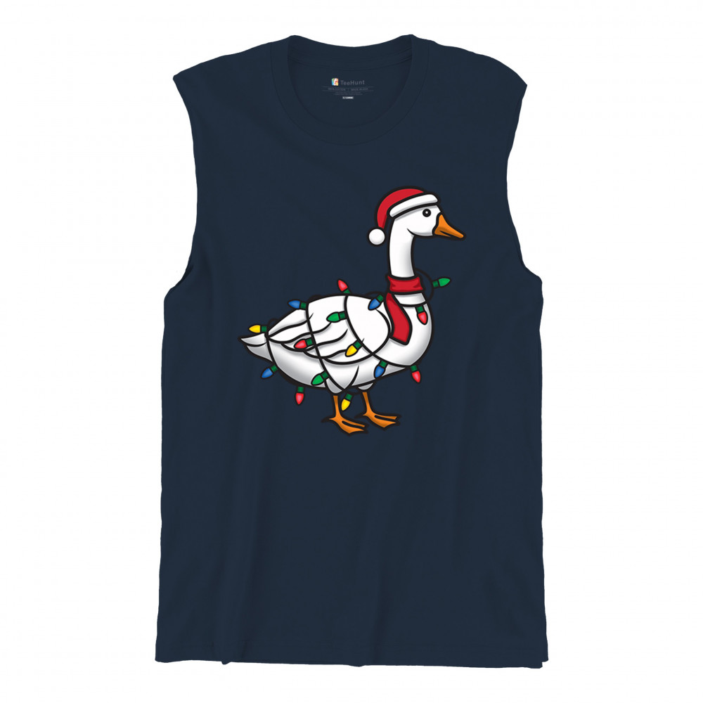 Funny Christmas goose wrapped in lights with festive humor, perfect for holiday gifting, white elephant exchanges, and cheerful seasonal style.