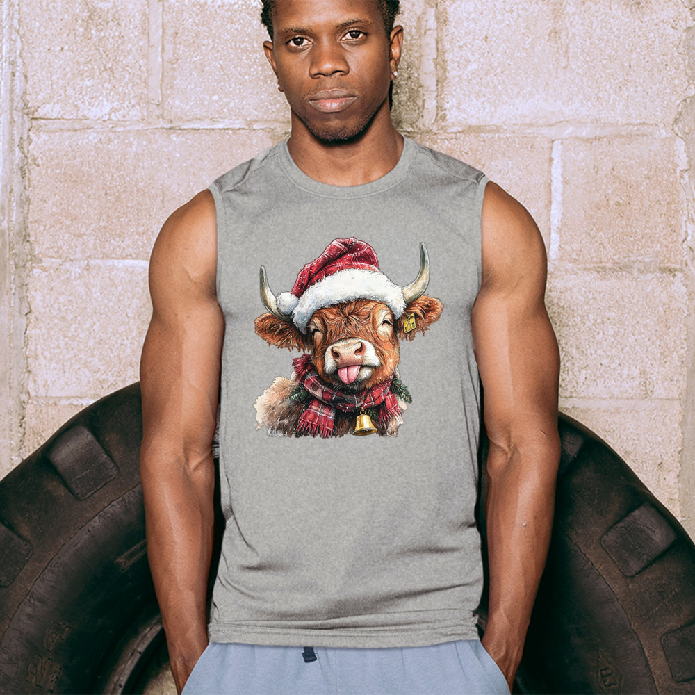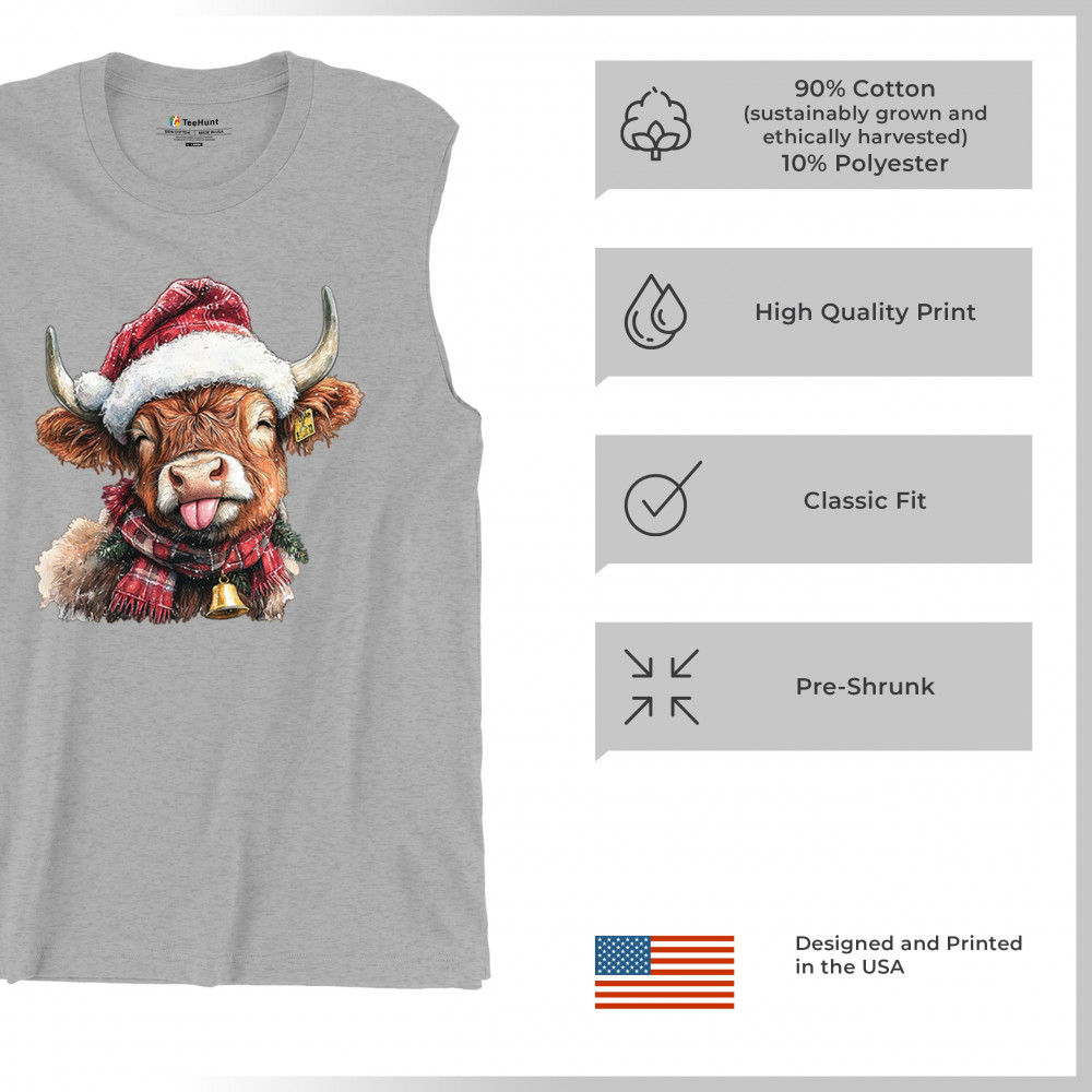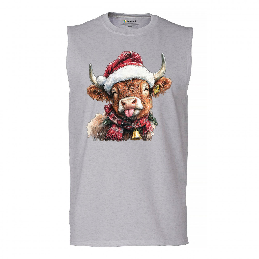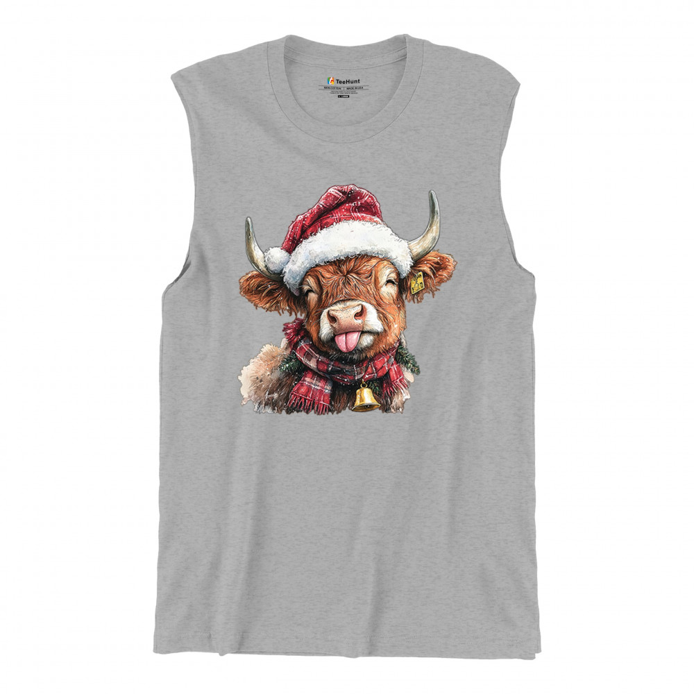 Christmas Highland Cow shirt – rustic holiday design with Santa hat cow, farmhouse holiday humor, country Christmas vibes, and festive livestock art.