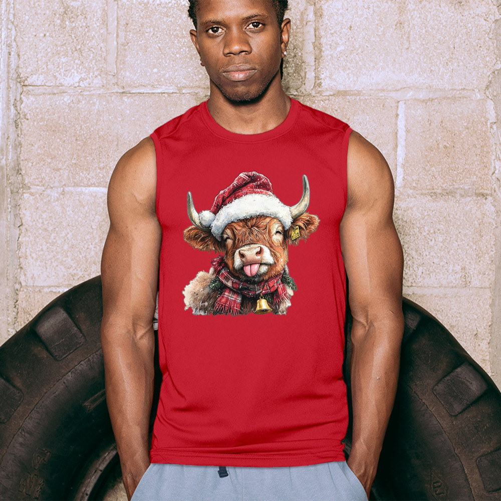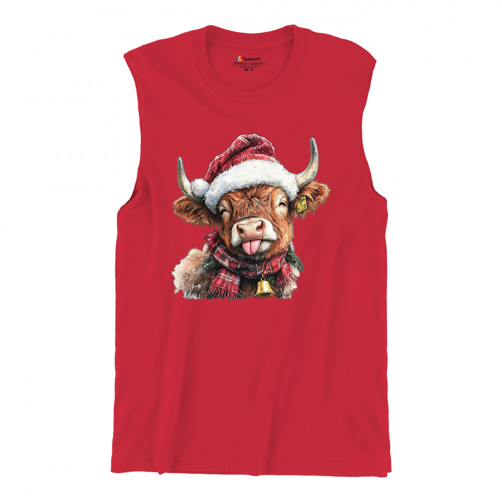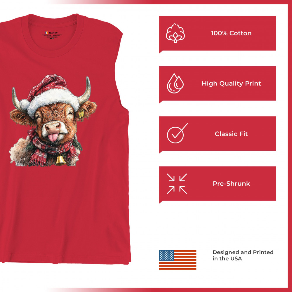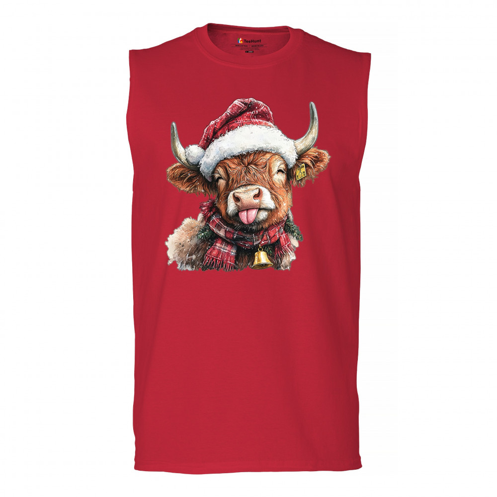 Christmas Highland Cow shirt – rustic holiday design with Santa hat cow, farmhouse holiday humor, country Christmas vibes, and festive livestock art.