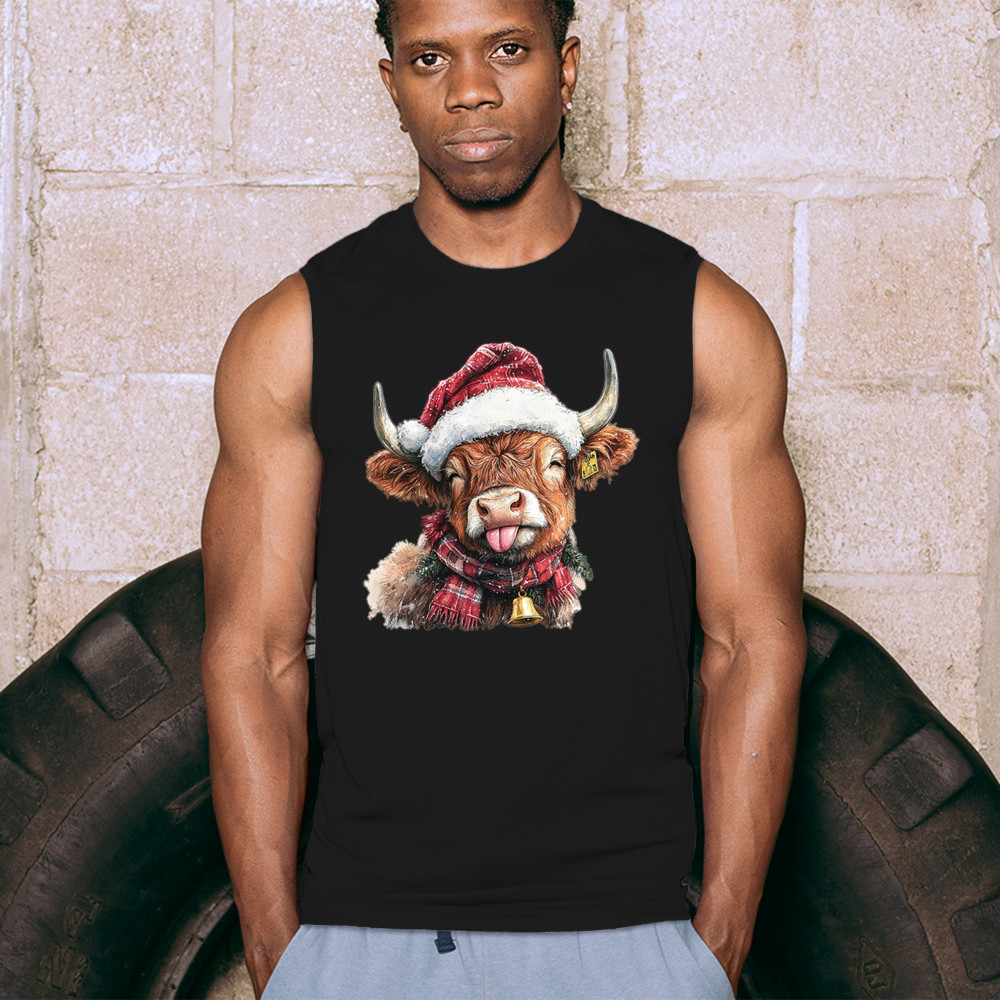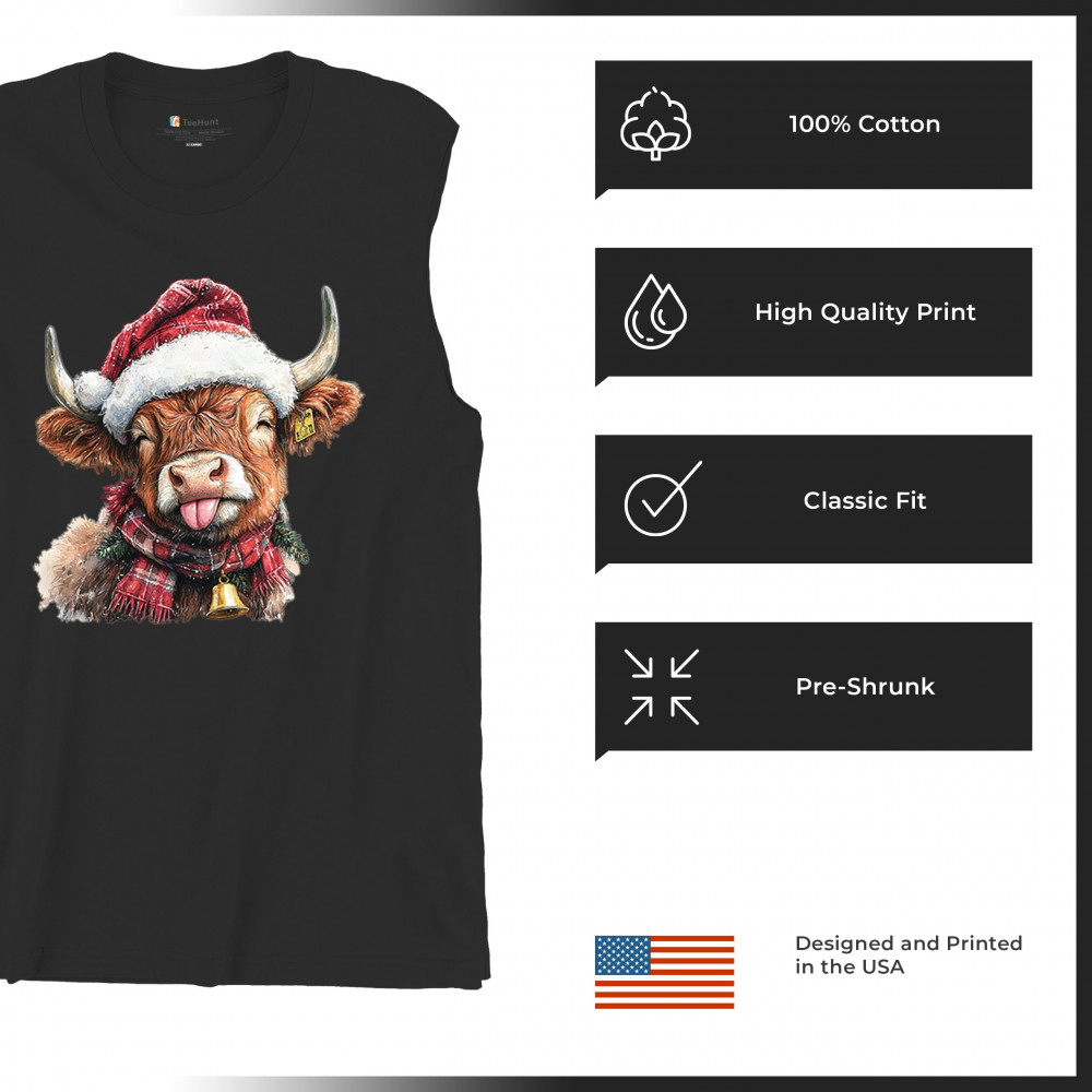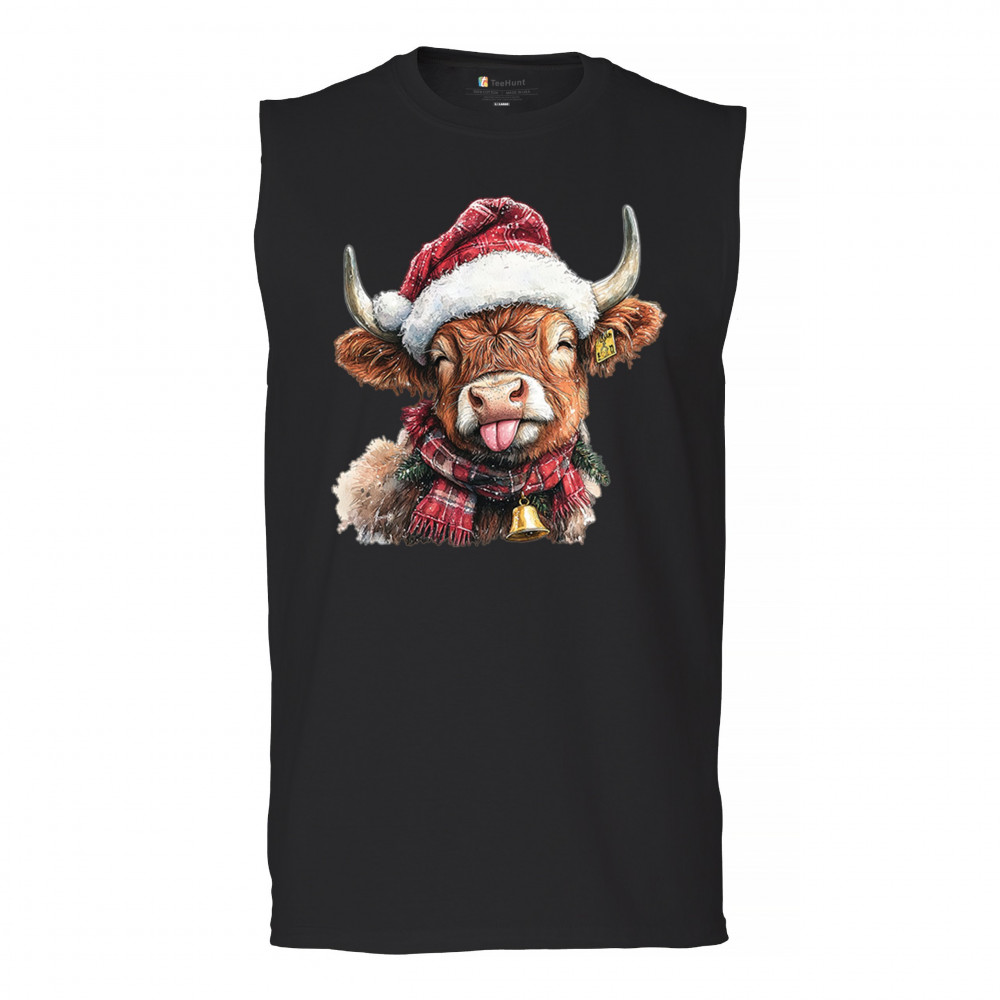 Christmas Highland Cow shirt – rustic holiday design with Santa hat cow, farmhouse holiday humor, country Christmas vibes, and festive livestock art.