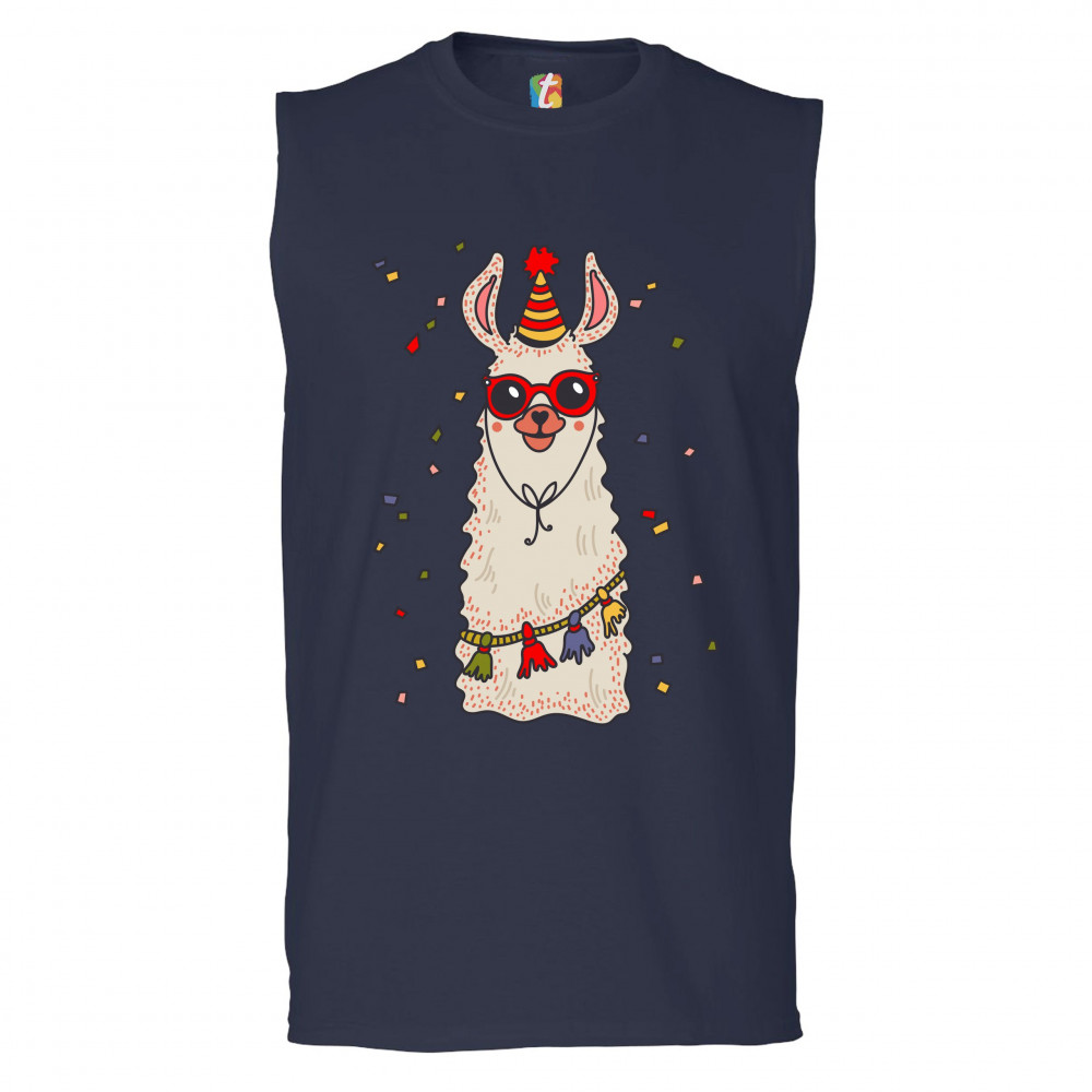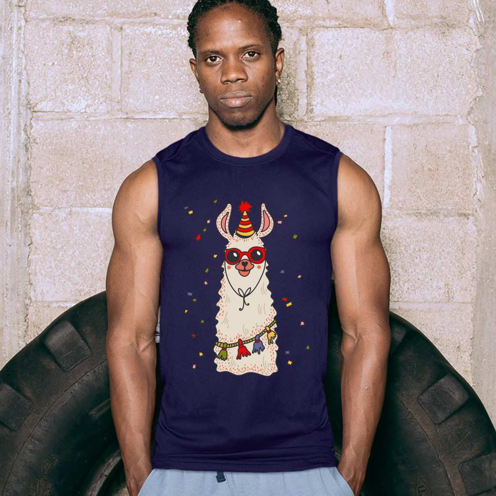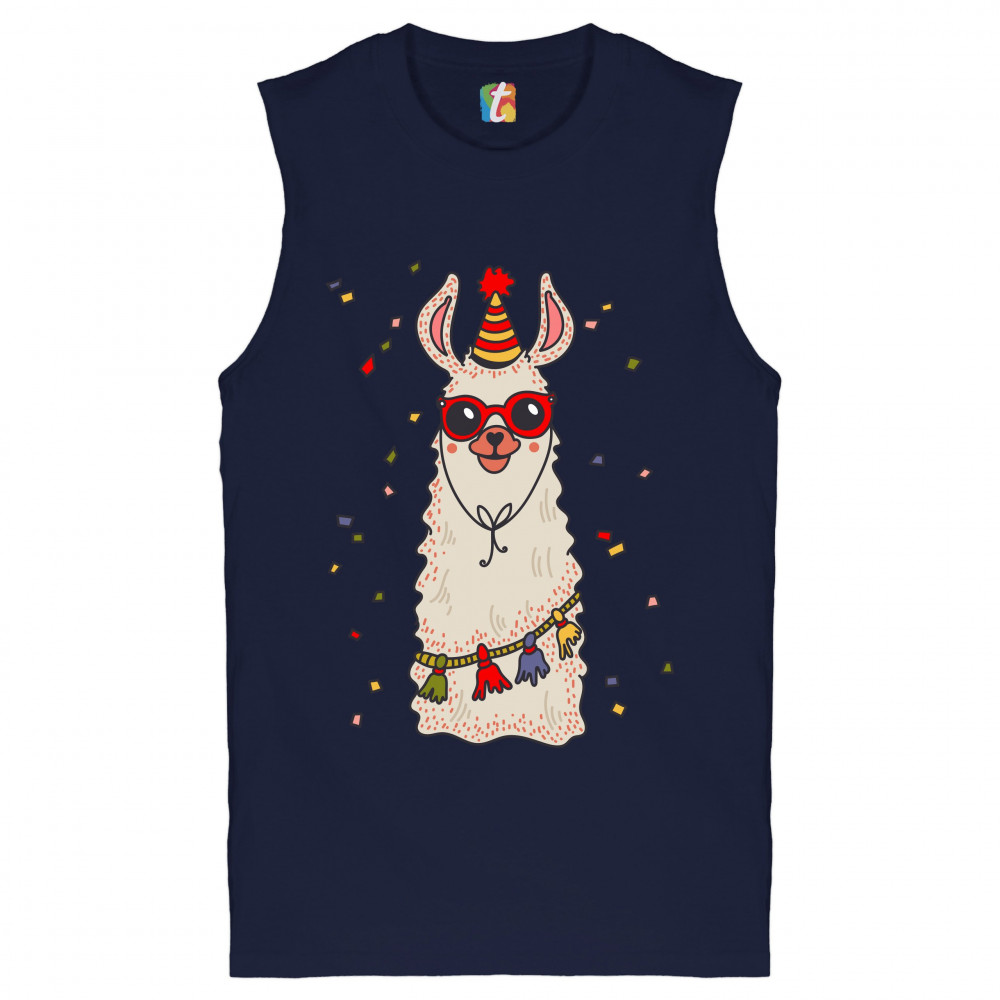 CHRISTMAS LLAMA muscle shirt merry and bright let it snow funny xmas men's navy blue
