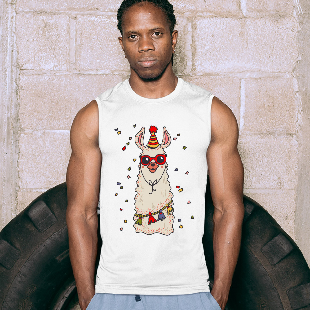 CHRISTMAS LLAMA muscle shirt merry and bright let it snow funny xmas men's white