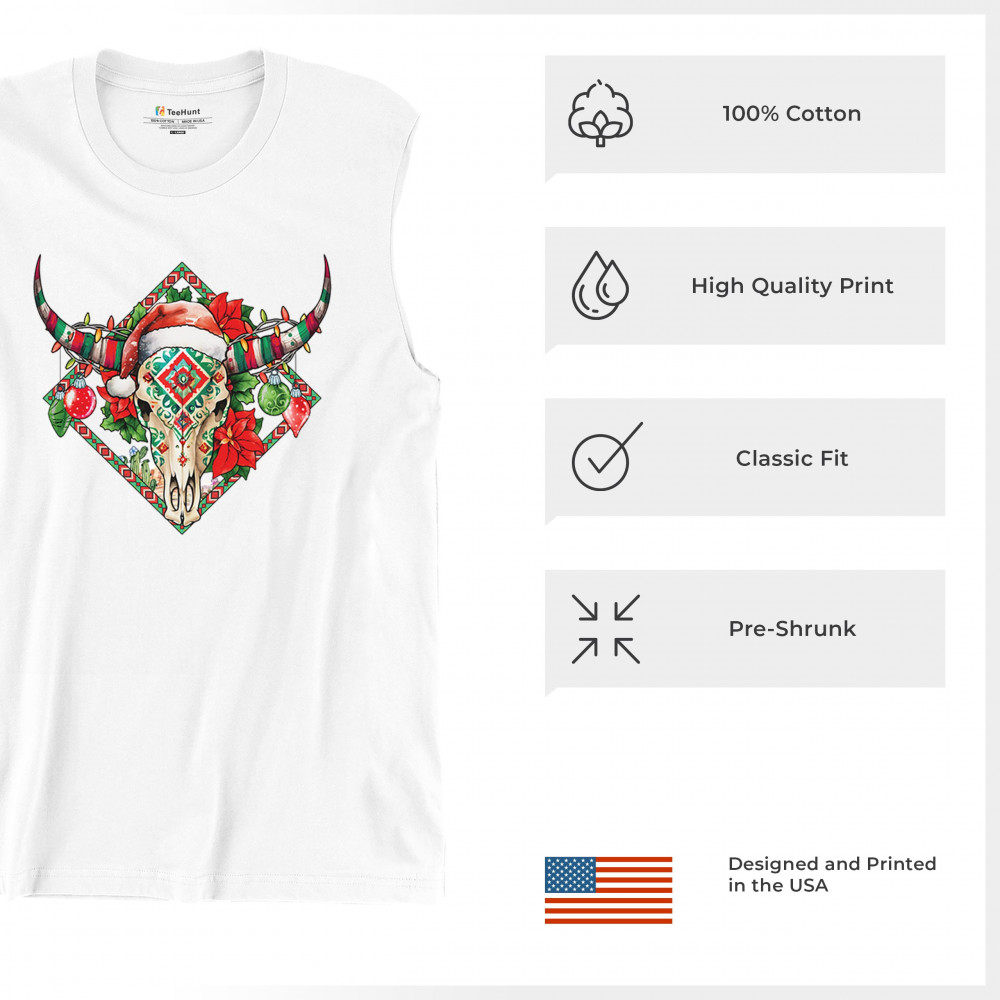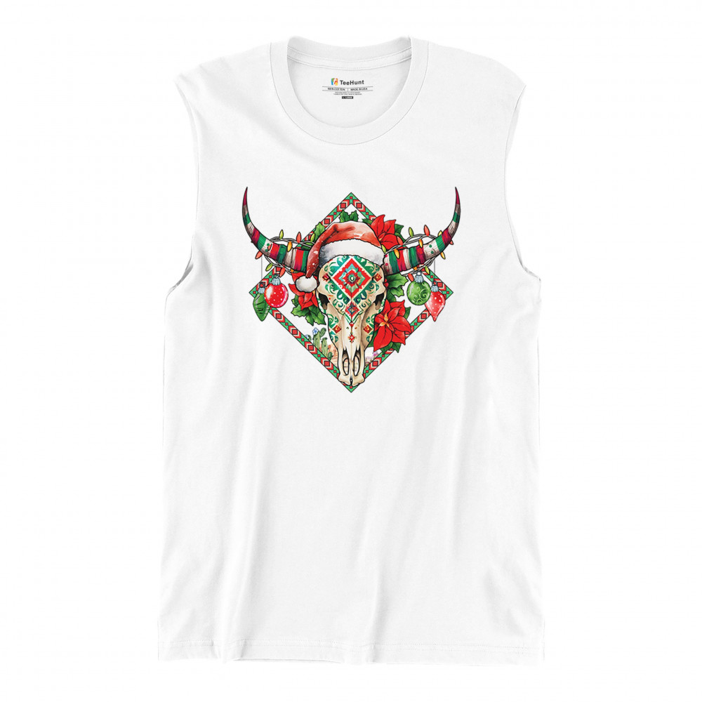 Blend Southwestern charm with holiday cheer! This vibrant skull design with poinsettias and ornaments is perfect for festive parties and unique gifts!