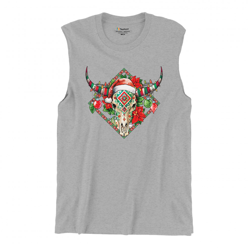 Blend Southwestern charm with holiday cheer! This vibrant skull design with poinsettias and ornaments is perfect for festive parties and unique gifts!