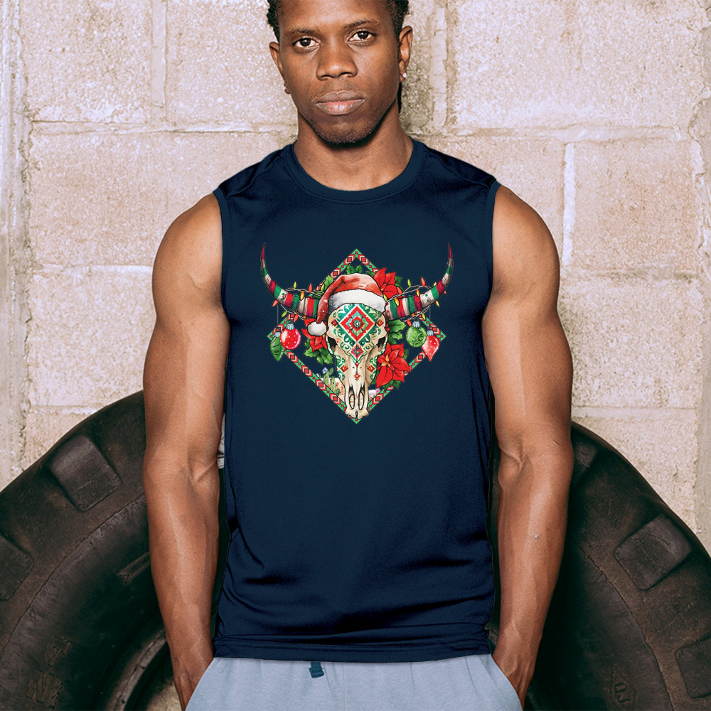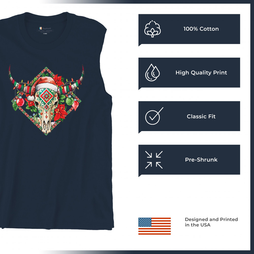 Blend Southwestern charm with holiday cheer! This vibrant skull design with poinsettias and ornaments is perfect for festive parties and unique gifts!