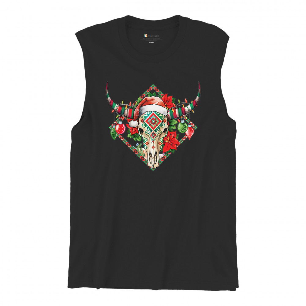 Blend Southwestern charm with holiday cheer! This vibrant skull design with poinsettias and ornaments is perfect for festive parties and unique gifts!