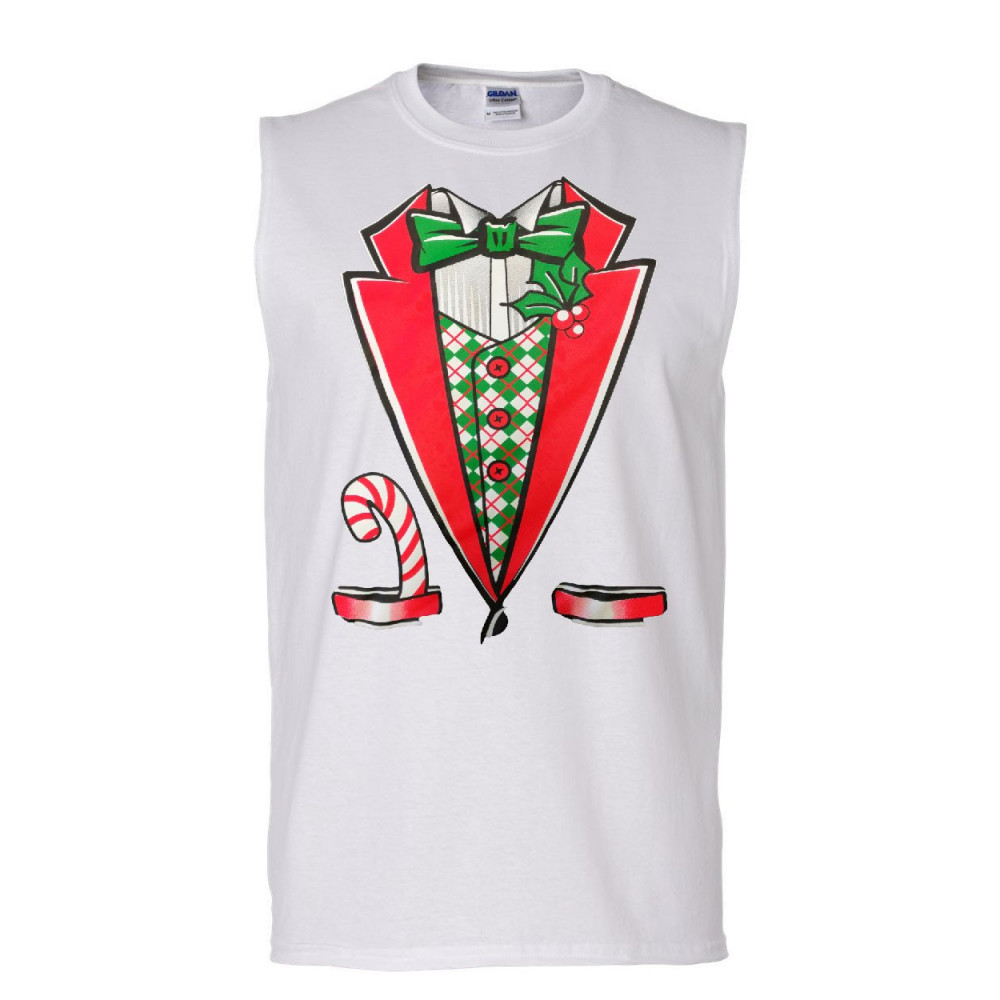 CHRISTMAS TUXEDO muscle shirt funny xmas santa elf white